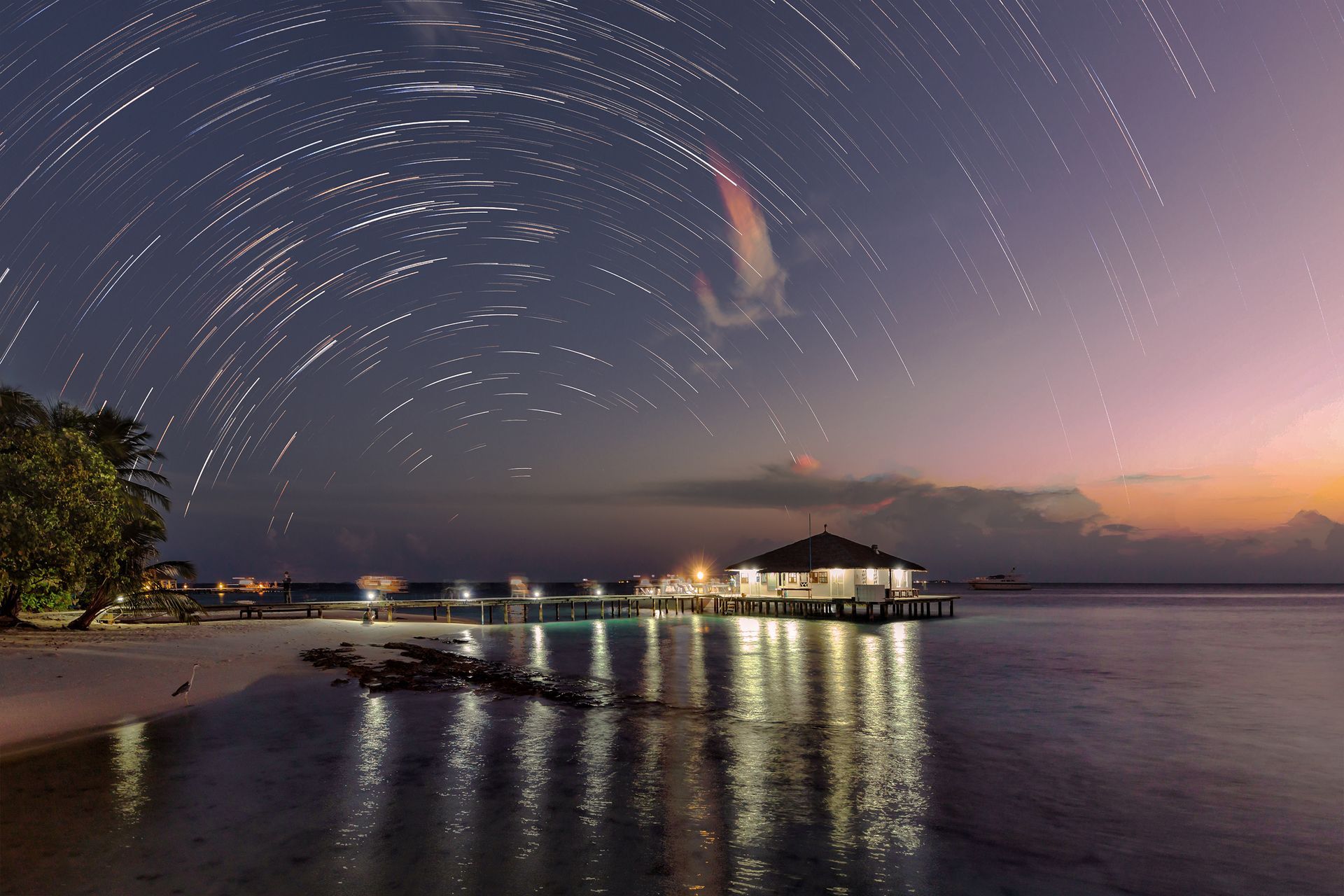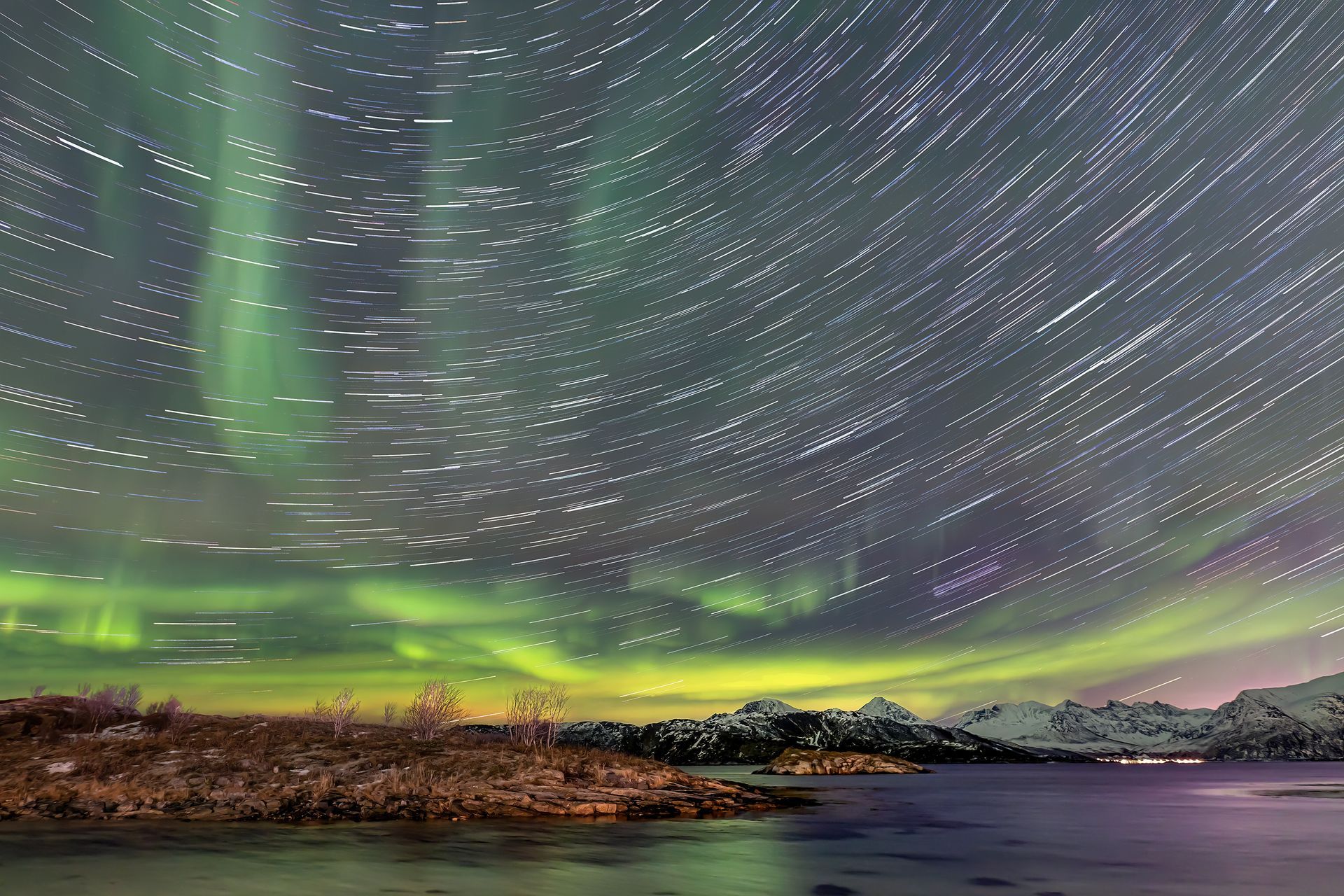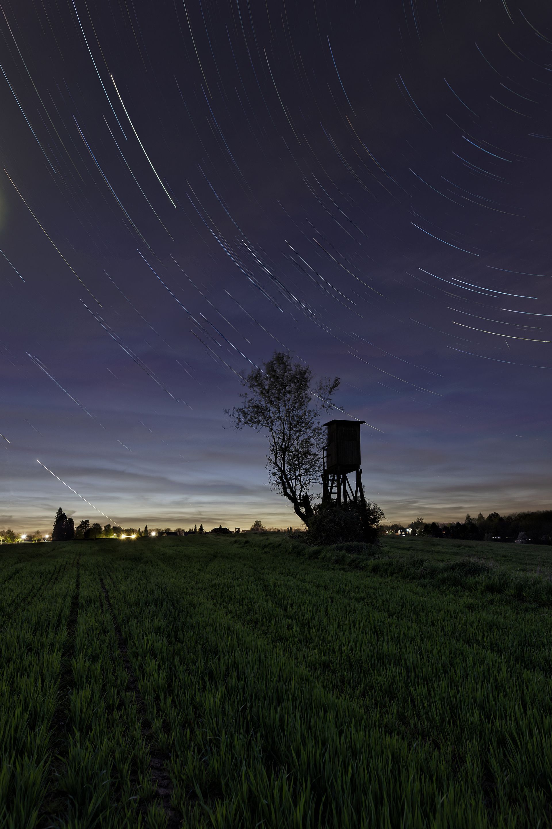 Startrails oder auch Sternstrichspuren sind eine Zusammenfassung von Bildern, um die Erdbewegung in Form von Strichen darzustellen. Je mehr Bilder über einen längeren Zeitraum aufgenommen werden, umso länger werden die Strichspuren der Sterne.