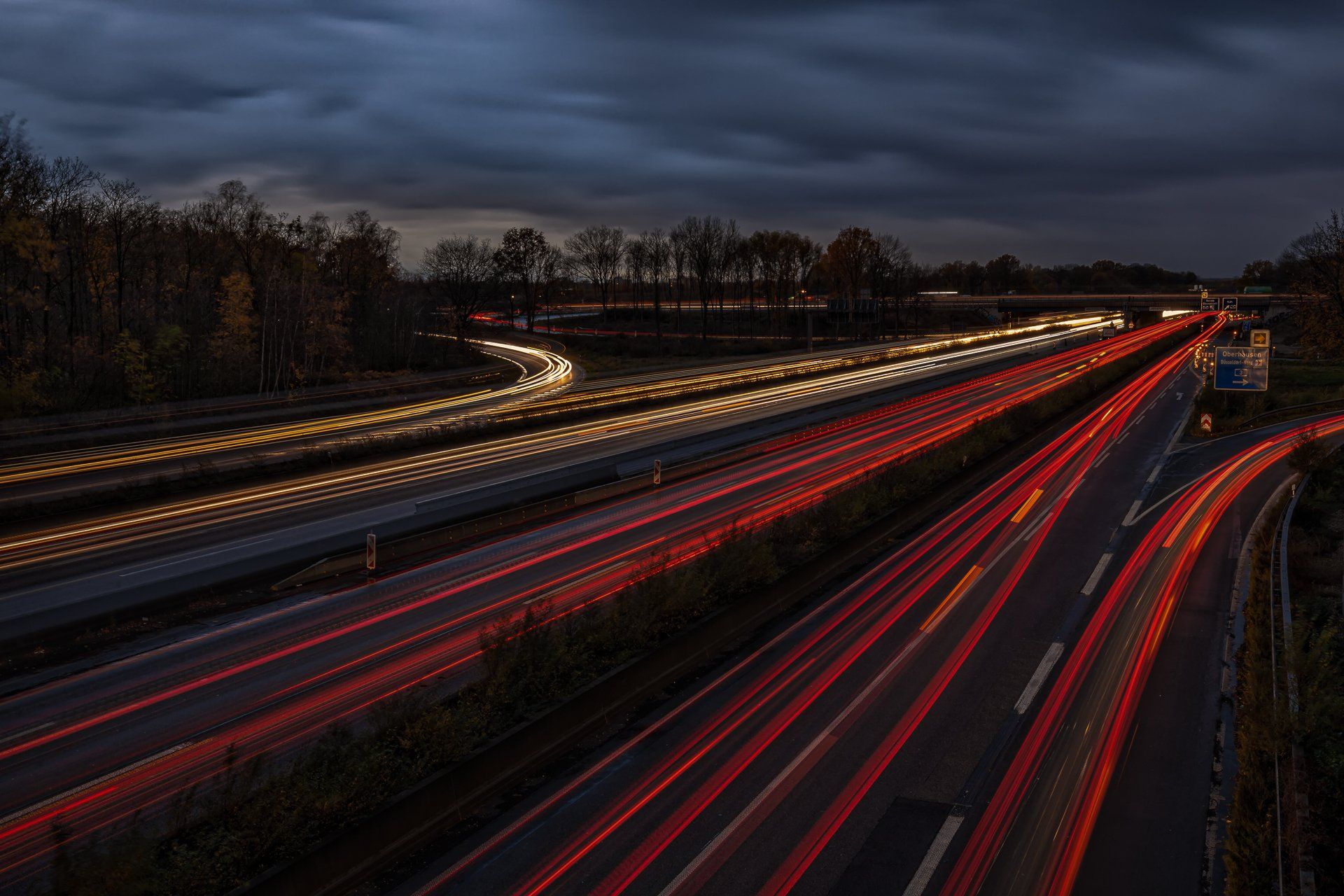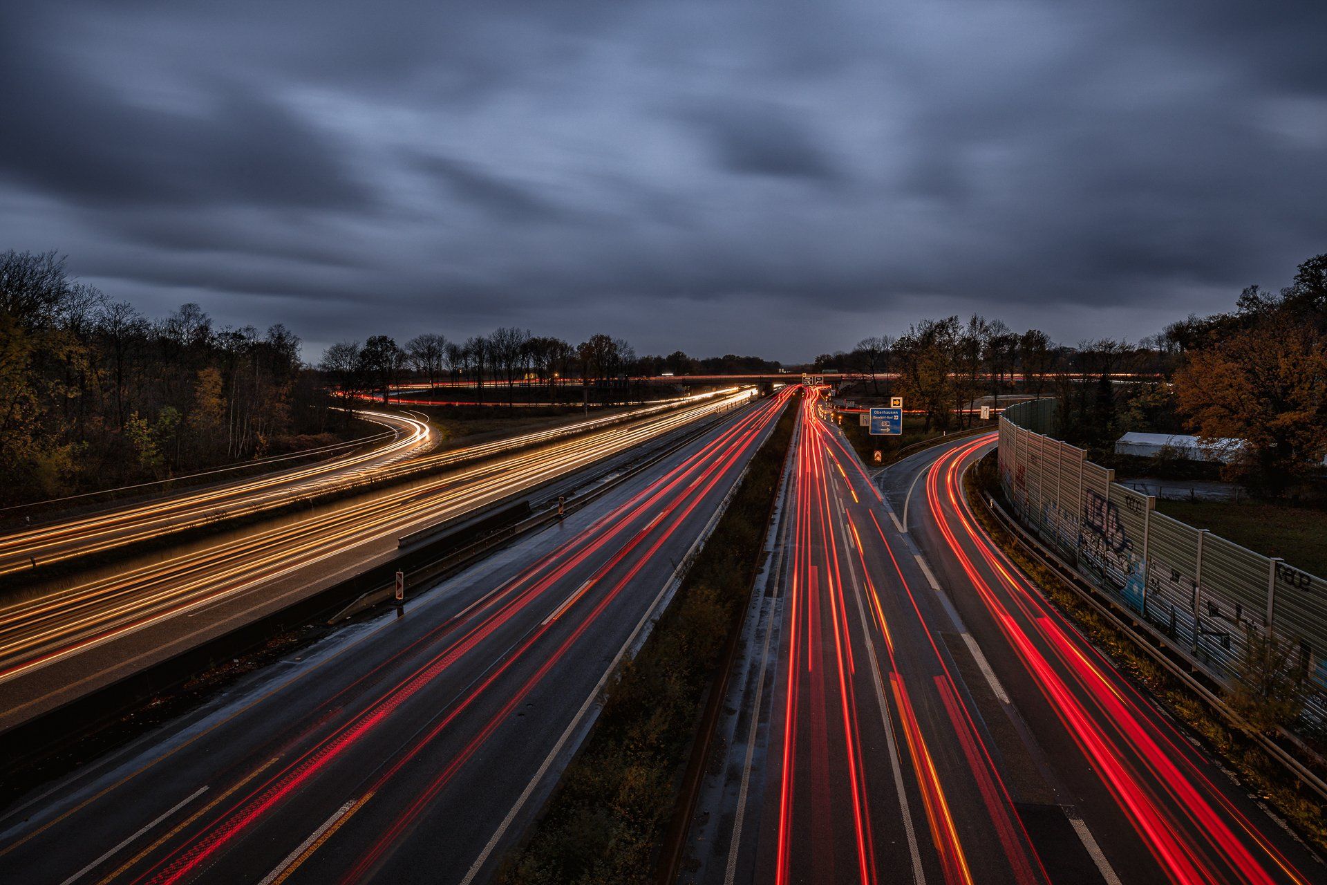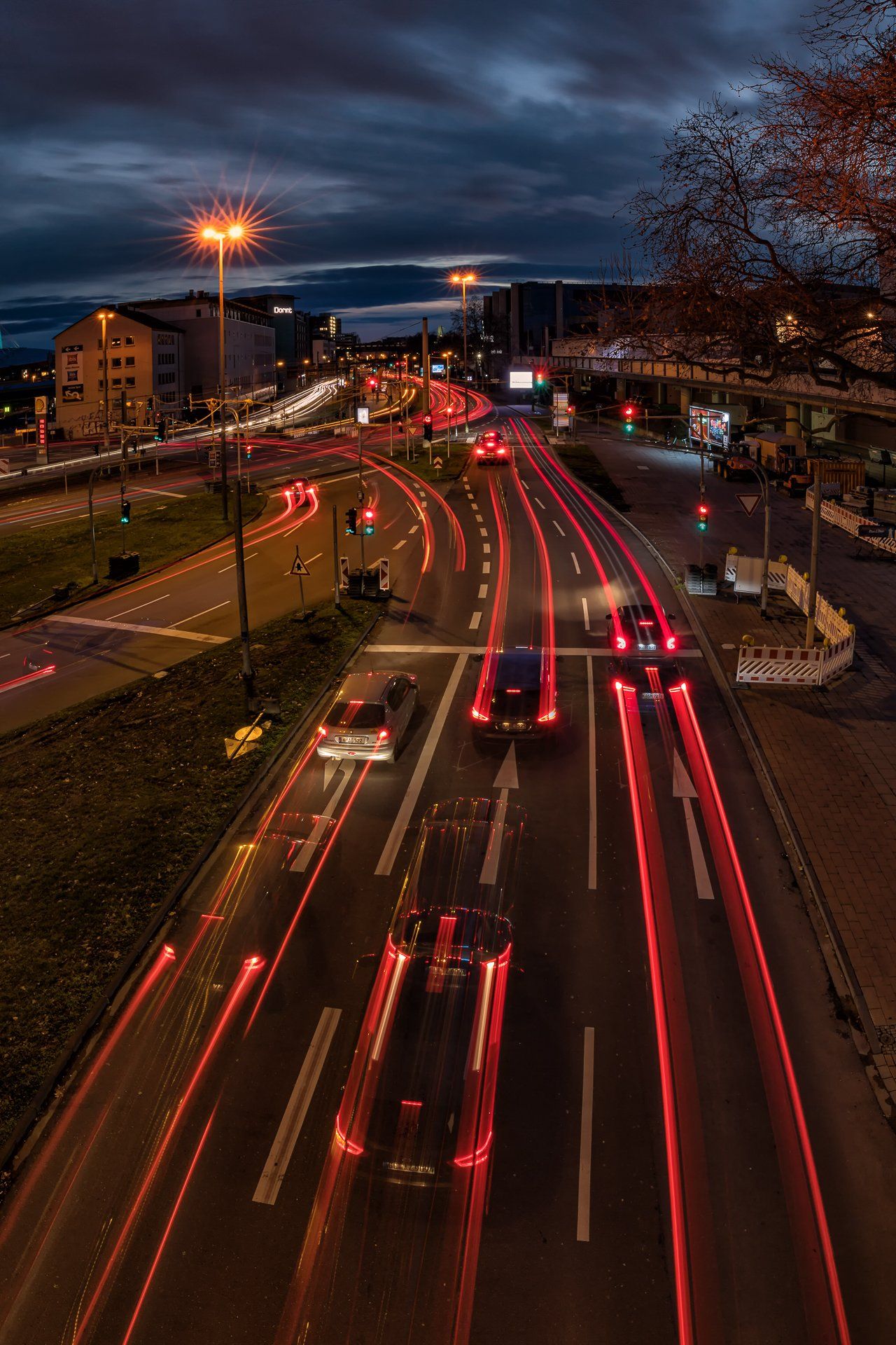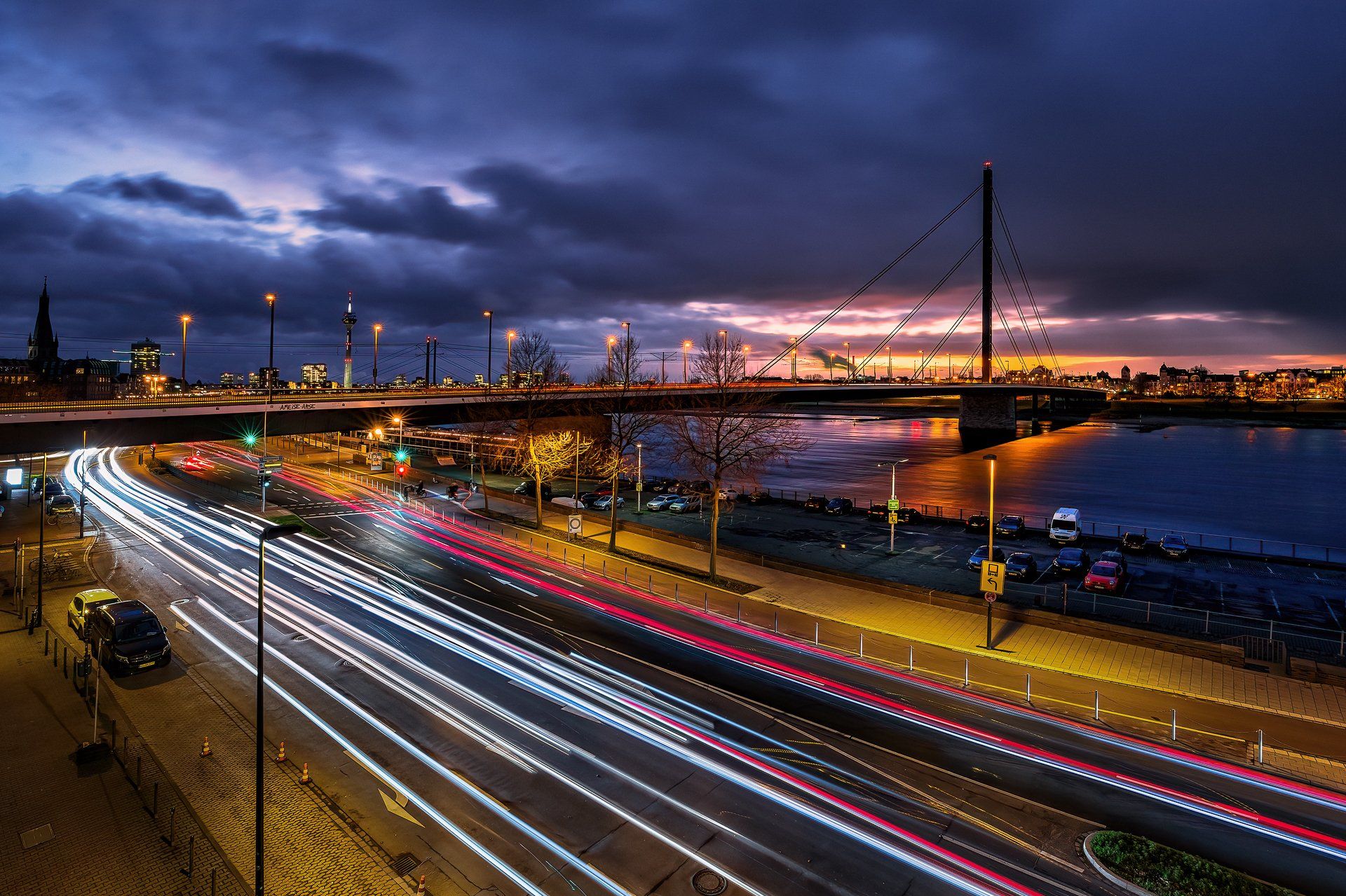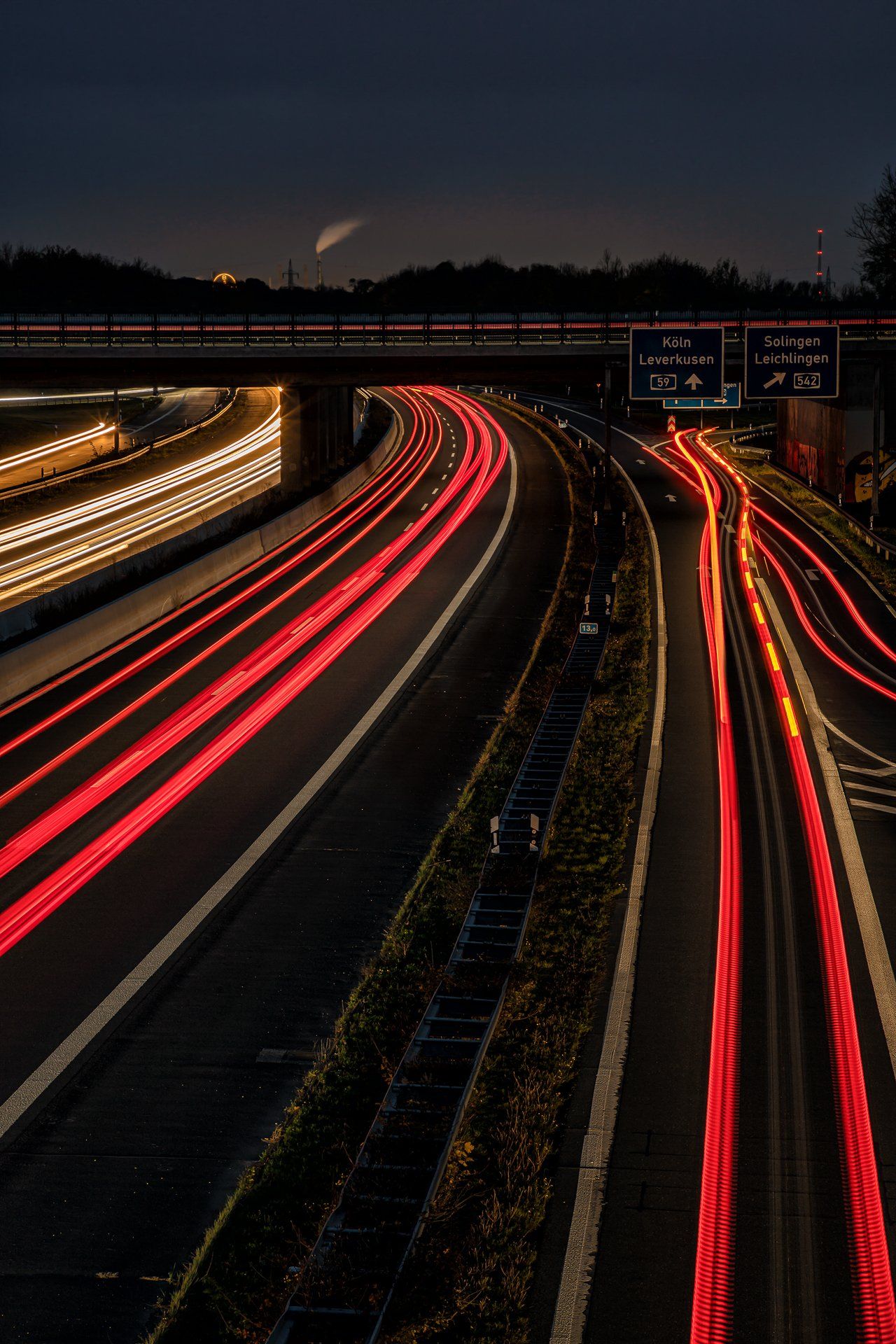 Der Ursprung in meiner Fotografie von Lichtspuren, also der Langzeitbelichtung von sich bewegenden Fahrzeugen, findet sich in der Bildidee, das Autobahnkreuz Monheim Süd mit all seinen befahrenden Spuren zu fotografieren. Diese Idee hatte ich im April 2020, da es aber eher ein weniger befahrenes Autobahnkreuz ist und ich alle Fahrspuren befahren haben wollte musste ich warten bis es zur Rushhour dunkel genug war, um die Langzeitbelichtung auf zu nehmen. Im Dezember 2020 entstand dann mein erstes geplantes Lichtspurenbild. Die Planung, Durchführung und Bearbeitung am Rechner machte mir soviel Spaß, dass ich immer häufiger loszog, um Lichtspuren zu knipsen. Eine schöne Beschäftigung für Herbst & Winter!