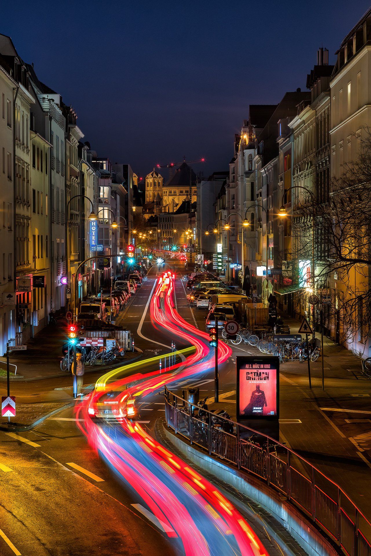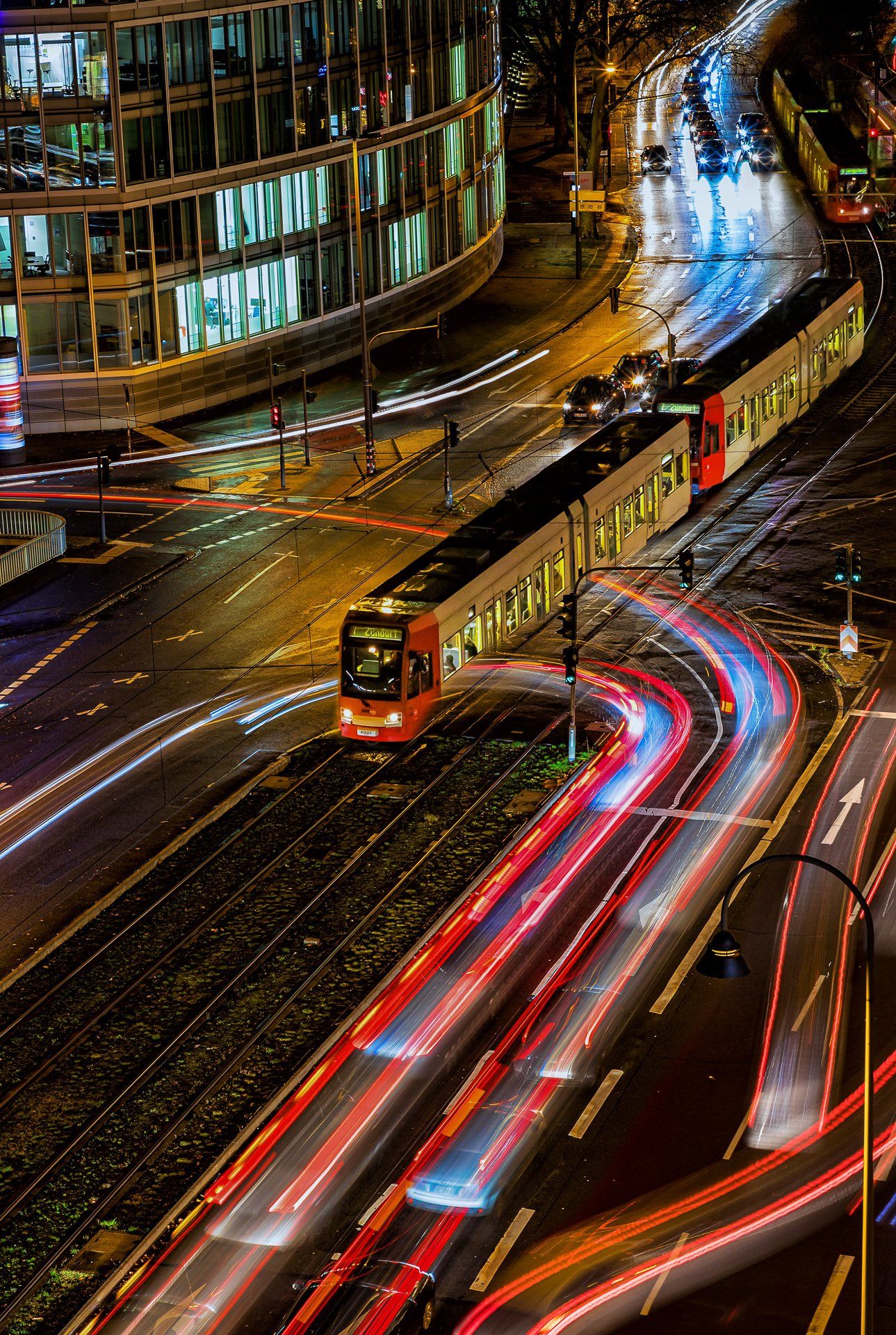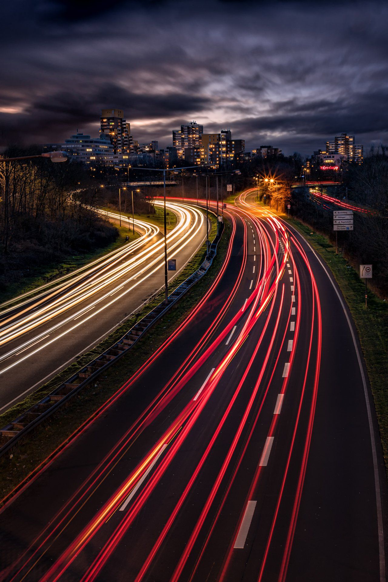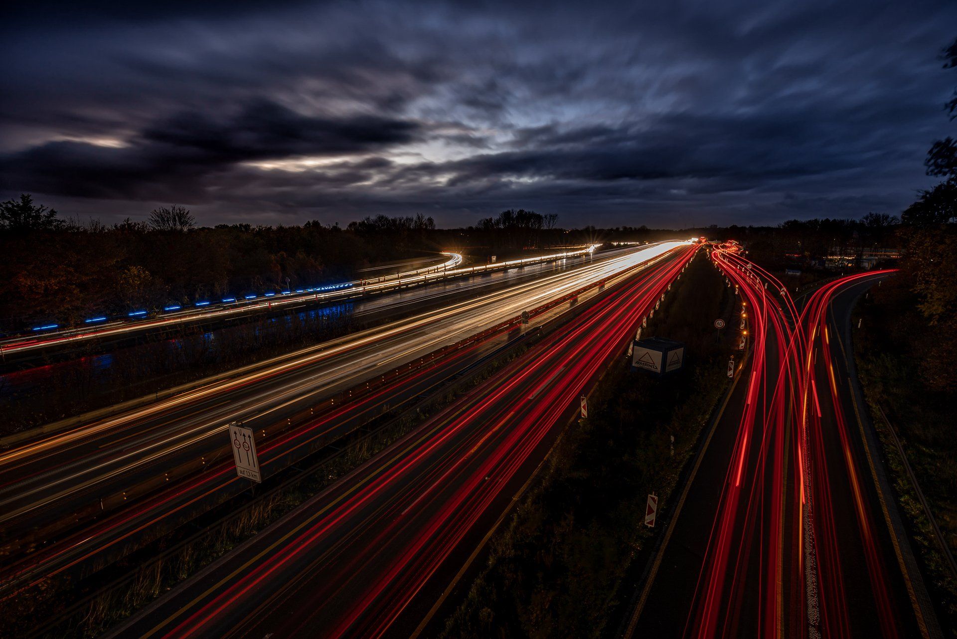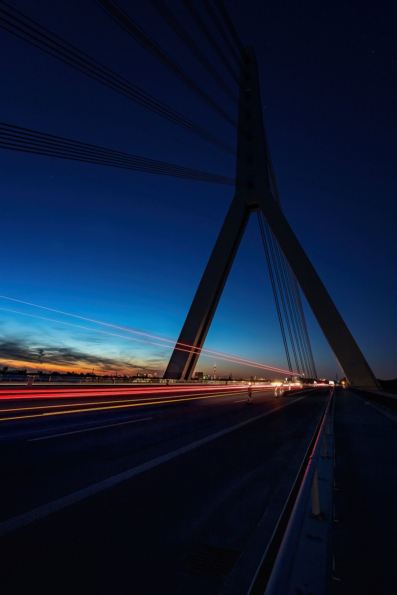 Der Ursprung in meiner Fotografie von Lichtspuren, also der Langzeitbelichtung von sich bewegenden Fahrzeugen, findet sich in der Bildidee, das Autobahnkreuz Monheim Süd mit all seinen befahrenden Spuren zu fotografieren. Diese Idee hatte ich im April 2020, da es aber eher ein weniger befahrenes Autobahnkreuz ist und ich alle Fahrspuren befahren haben wollte musste ich warten bis es zur Rushhour dunkel genug war, um die Langzeitbelichtung auf zu nehmen. Im Dezember 2020 entstand dann mein erstes geplantes Lichtspurenbild. Die Planung, Durchführung und Bearbeitung am Rechner machte mir soviel Spaß, dass ich immer häufiger loszog, um Lichtspuren zu knipsen. Eine schöne Beschäftigung für Herbst & Winter!