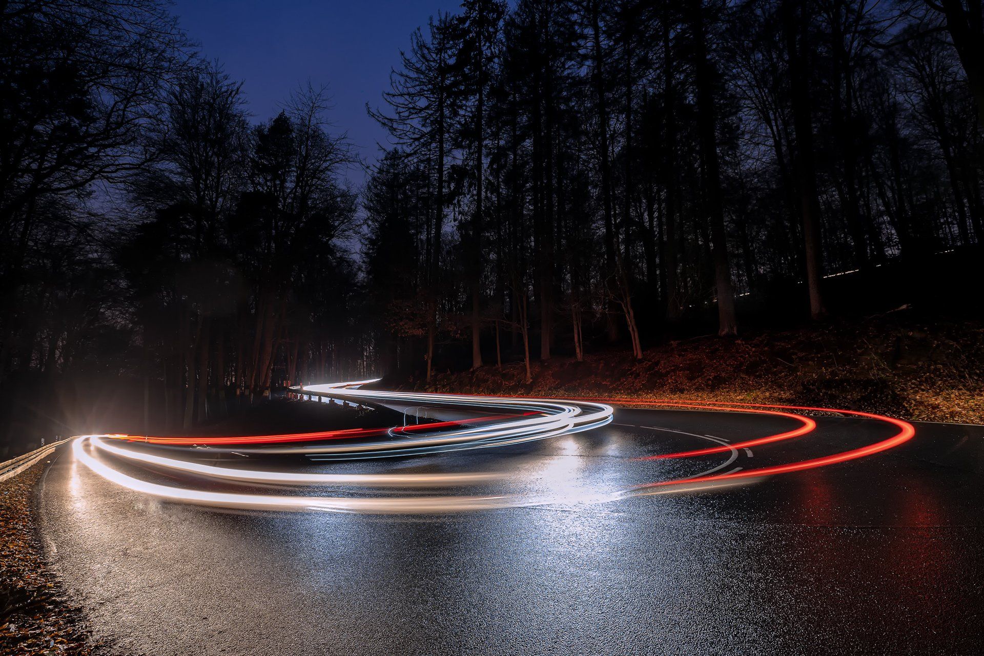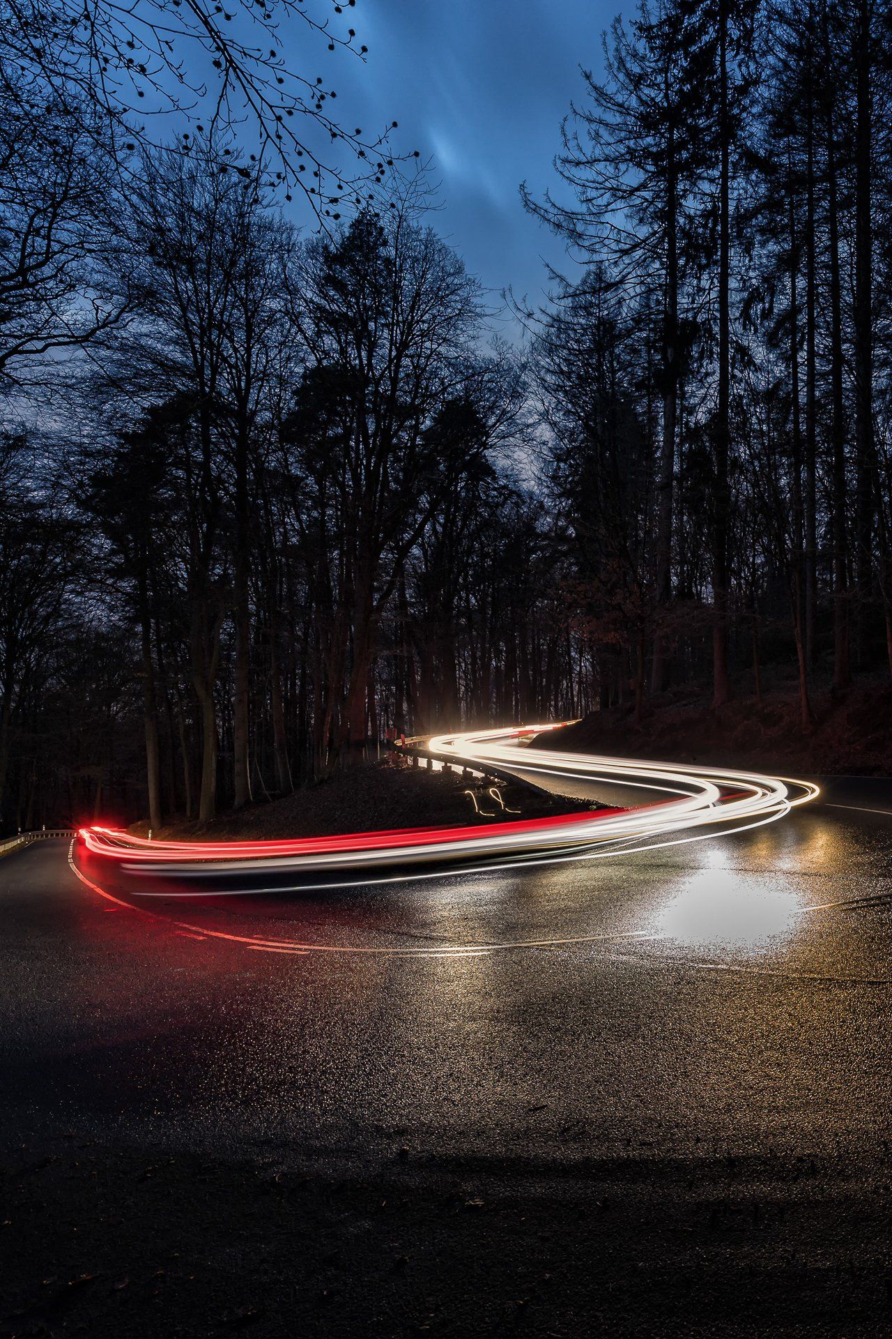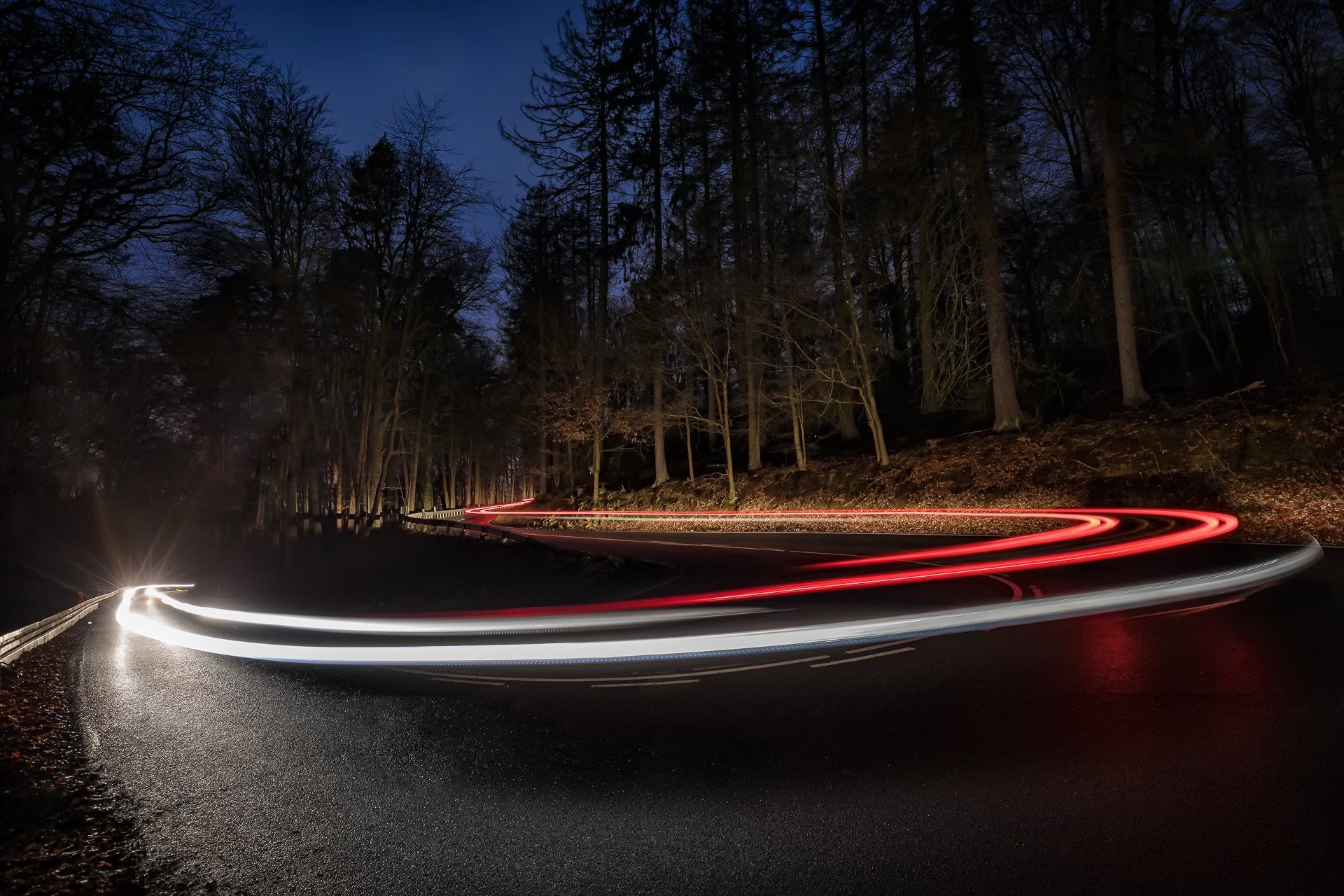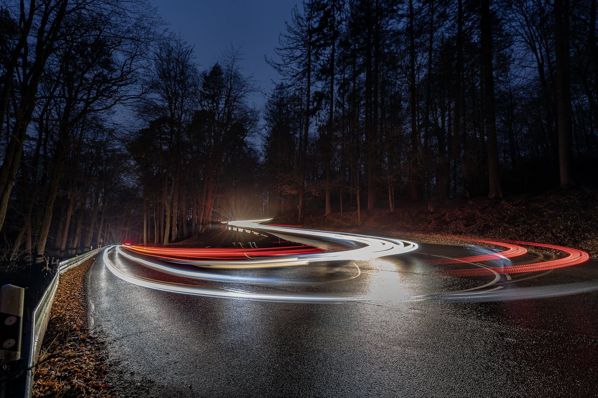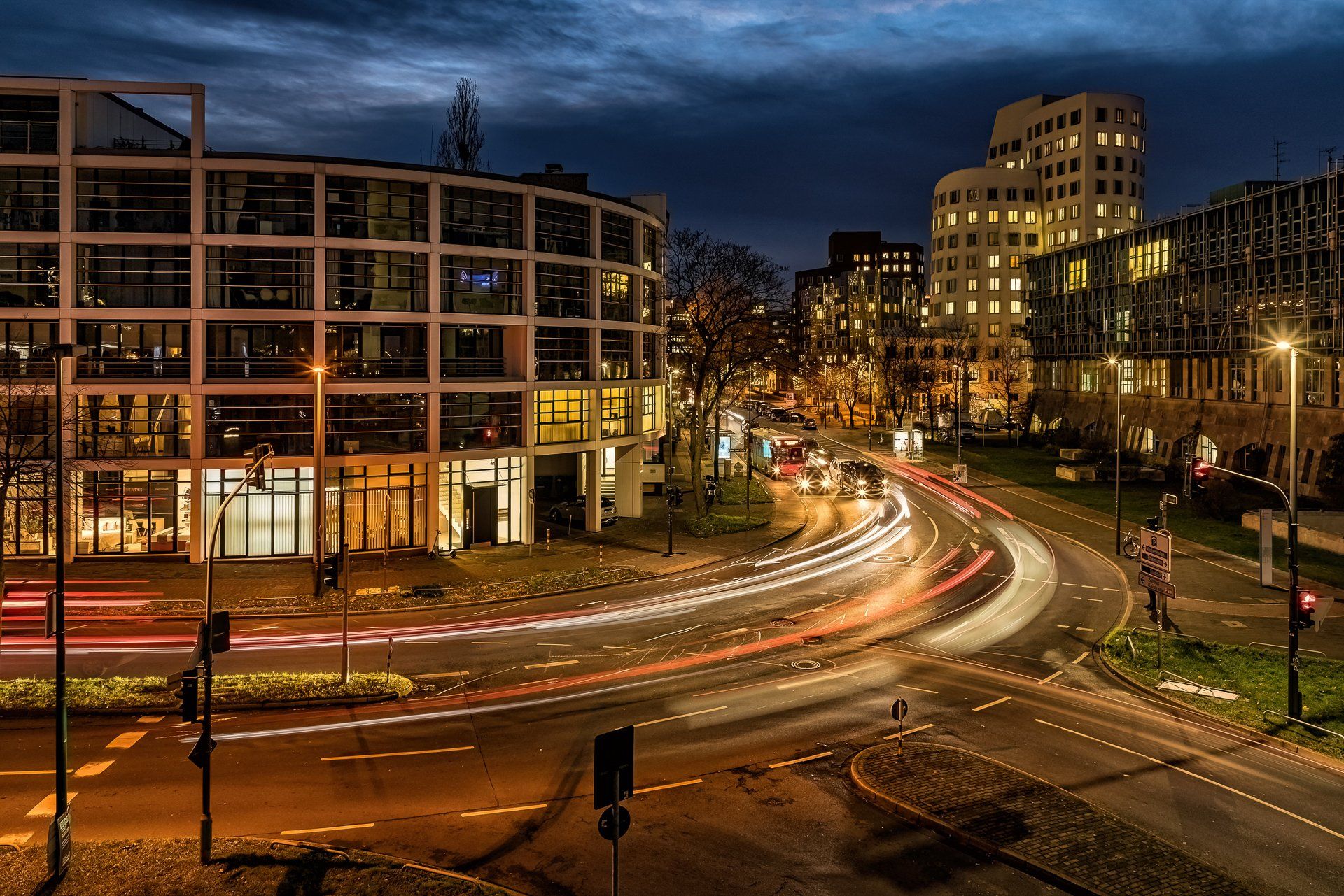 Der Ursprung in meiner Fotografie von Lichtspuren, also der Langzeitbelichtung von sich bewegenden Fahrzeugen, findet sich in der Bildidee, das Autobahnkreuz Monheim Süd mit all seinen befahrenden Spuren zu fotografieren. Diese Idee hatte ich im April 2020, da es aber eher ein weniger befahrenes Autobahnkreuz ist und ich alle Fahrspuren befahren haben wollte musste ich warten bis es zur Rushhour dunkel genug war, um die Langzeitbelichtung auf zu nehmen. Im Dezember 2020 entstand dann mein erstes geplantes Lichtspurenbild. Die Planung, Durchführung und Bearbeitung am Rechner machte mir soviel Spaß, dass ich immer häufiger loszog, um Lichtspuren zu knipsen. Eine schöne Beschäftigung für Herbst & Winter!