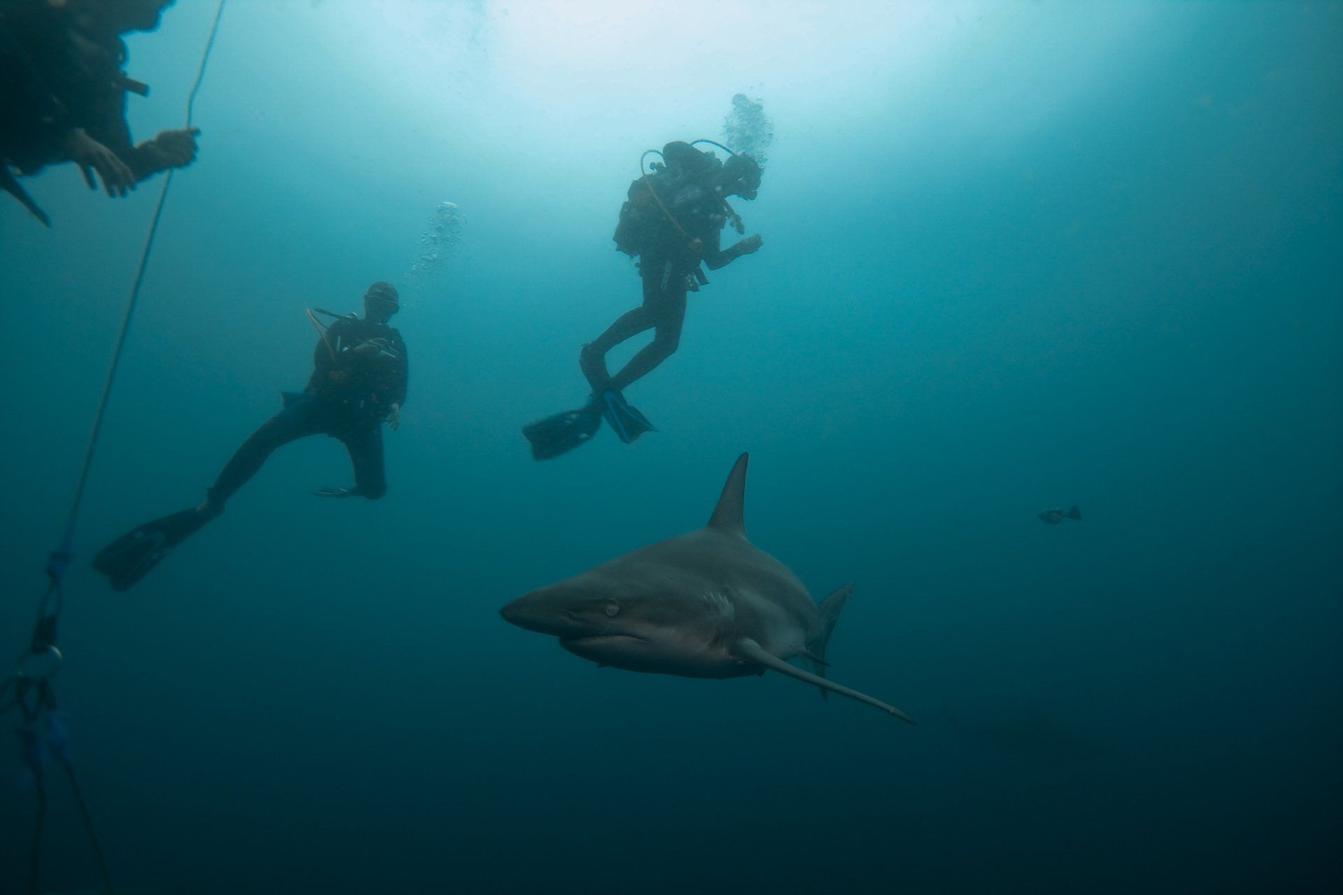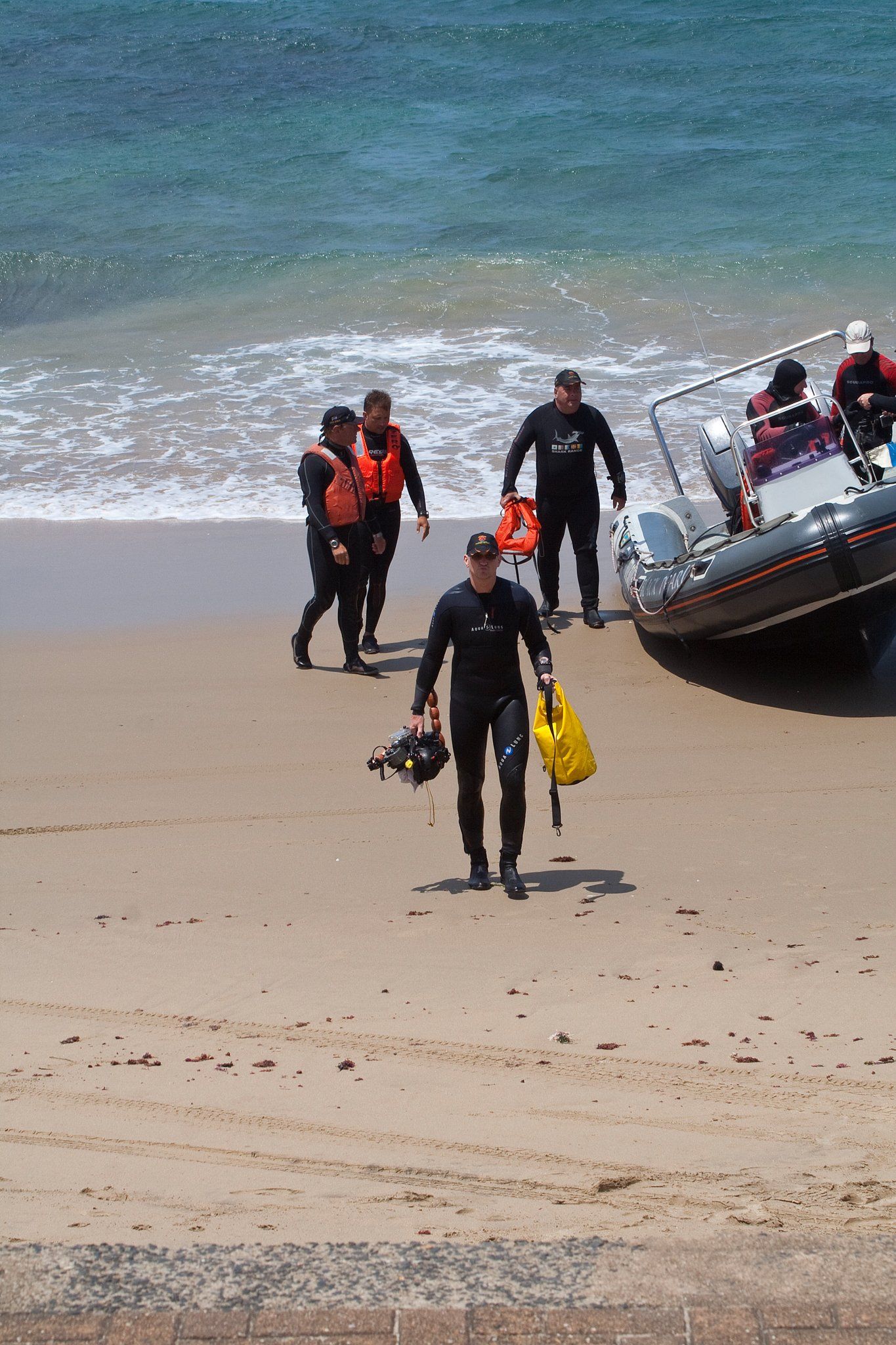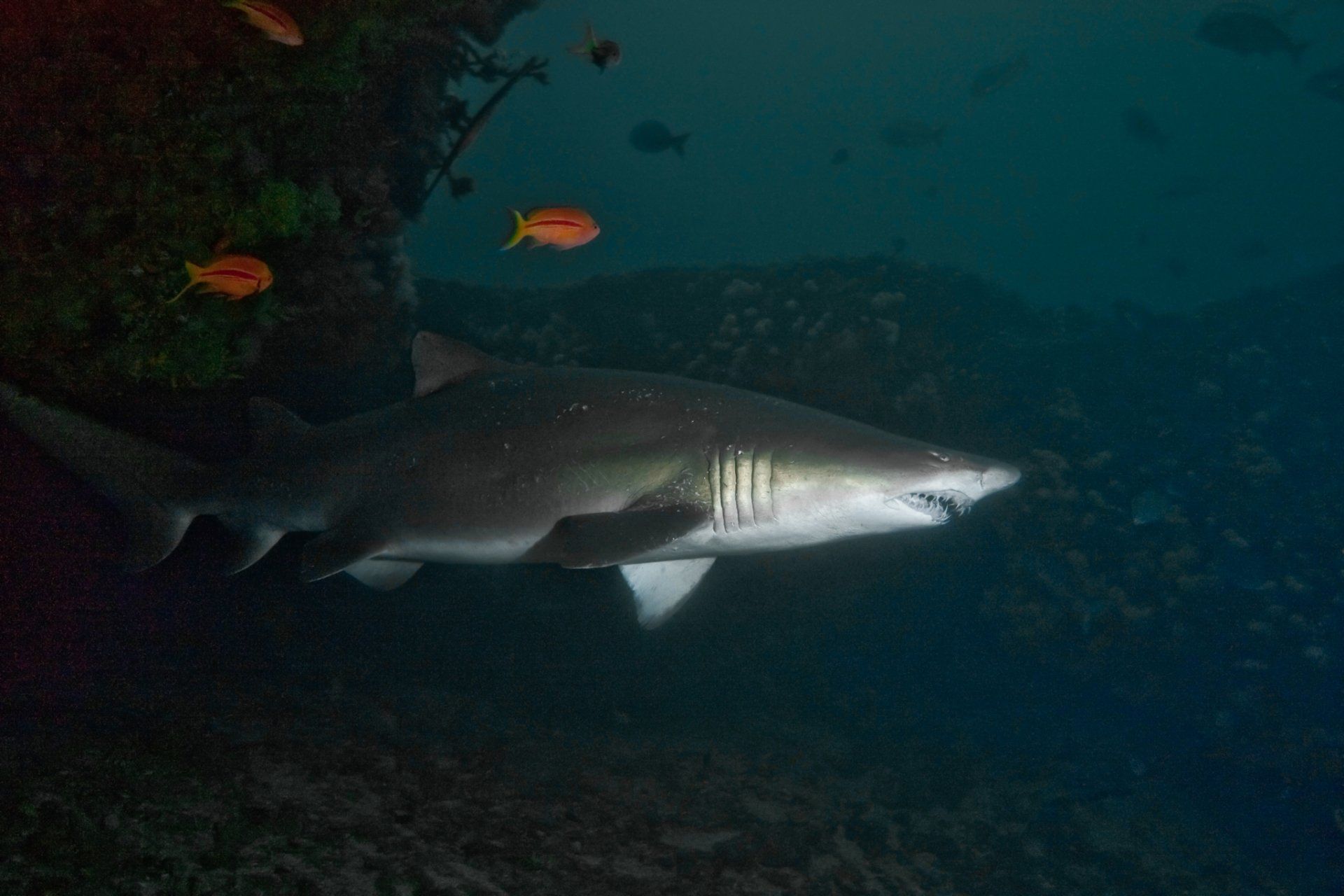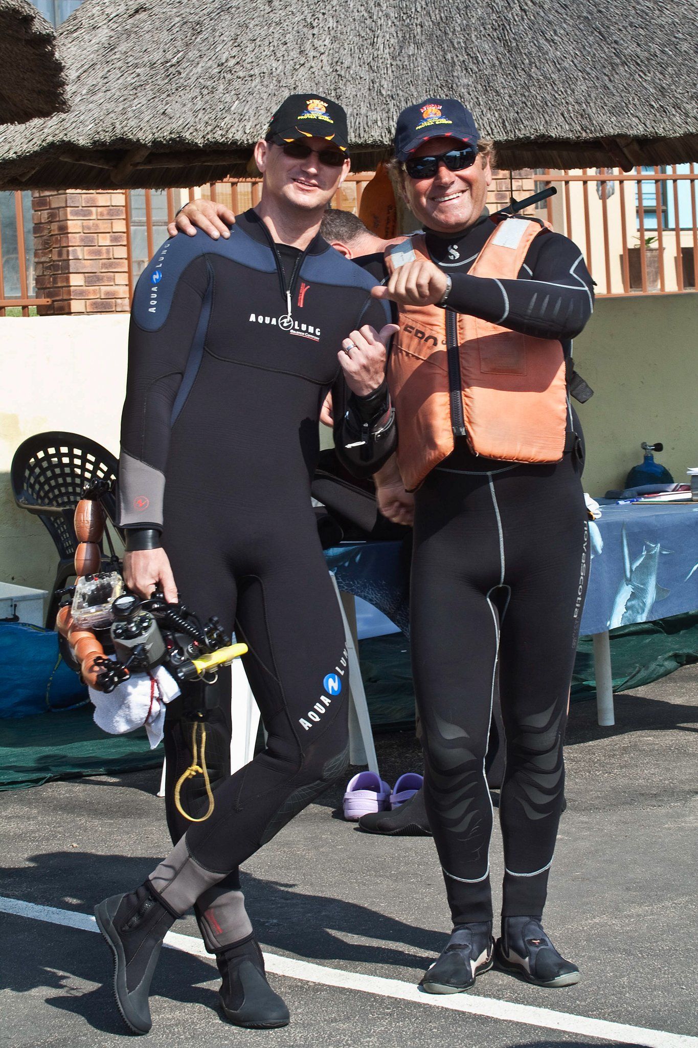 Im November 2011 zog es uns nach Südafrika. Von Frankfurt flogen wir über Johannesburg weiter nach Durban, wo wir einen Leihwagen mieteten um weiter nach Süden zu fahren. Nach 1,5 Stunden fahrt (auf der falschen Seite!!!) erreichten wir unser erstes Reiseziel, Shelly Beach. Wir bezogen unser Apartment im Breakerview und genossen die tolle Aussicht aufs Meer. Am nächsten Morgen machten wir uns in aller Frühe auf zur Tauchbasis von African Dive Adventure, gleich am Hafen wo Roland Mauz schon auf uns wartete. Getaucht wurde immer auf den 7 Km vor der Küste gelegenen Protea Banks die weltberühmt für ihre Haibegegnungen sind... und darum ging es hier... ums Haitauchen! Was aber nicht das einzige Abenteuer bleiben sollte, denn zum Tauchen gehört auch das Bootfahren. Was hier fast genau so spannend ist wie das Tauchen selbst. Nachdem das Boot vor jeder Ausfahrt ins Wasser gelassen war, folgte der Ritt durch die Brandung mit anschließender 20 minütiger Fahrt zu den Banks, dann die Tauchgänge und der Ritt zurück mit anschließender Landung am Strand...! Die Tauchgänge selbst waren sehr anspruchsvoll, strömungsreich und führten immer durchs freie Wasser. Wir hatten bei jedem Tauchgang Haibegegnungen, am häufigsten waren Gruppen von Hunderten von Hammerhaien (leider zu weit weg für anständige Bilder), Bullenhaie (die hier Zambezi genannt werden) Schwarzspitzenhaie, Düsterehaie und Sandtigerhaie. Leider sah ich keinen Tigerhai, dafür traf ich das wohl letzte Sandtigerhaiweibchen der Saison. Weiterhin hatten wir große Barsche und Rochen sowie jeden Tag (von Land und vom Boot aus) Buckelwale. Um die großen Fische besser vor die Linse zu bekommen machte ich 2 angefütterte Tauchgänge. Hier wurden die Haie zuerst vom Boot aus angelockt und dann mit einer mit Sardinen gefüllten Waschtrommel beim Boot gehalten. Diese hing an einem 10m langem Kabel und es konnte so lang getaucht werden wie man Luft in der Flasche hatte. Bei beiden Tauchgängen hatte ich mehrere Schwarzspitzen- und Bullenhaie, die alle samt ruhig und friedlich waren. Alle Tauchgänge waren im Vorfeld von Roland und seinen Leuten super gebrieft und perfekt durchgeführt worden. Mein nächster Besuch wird zur Tigerhaisaison sein!
