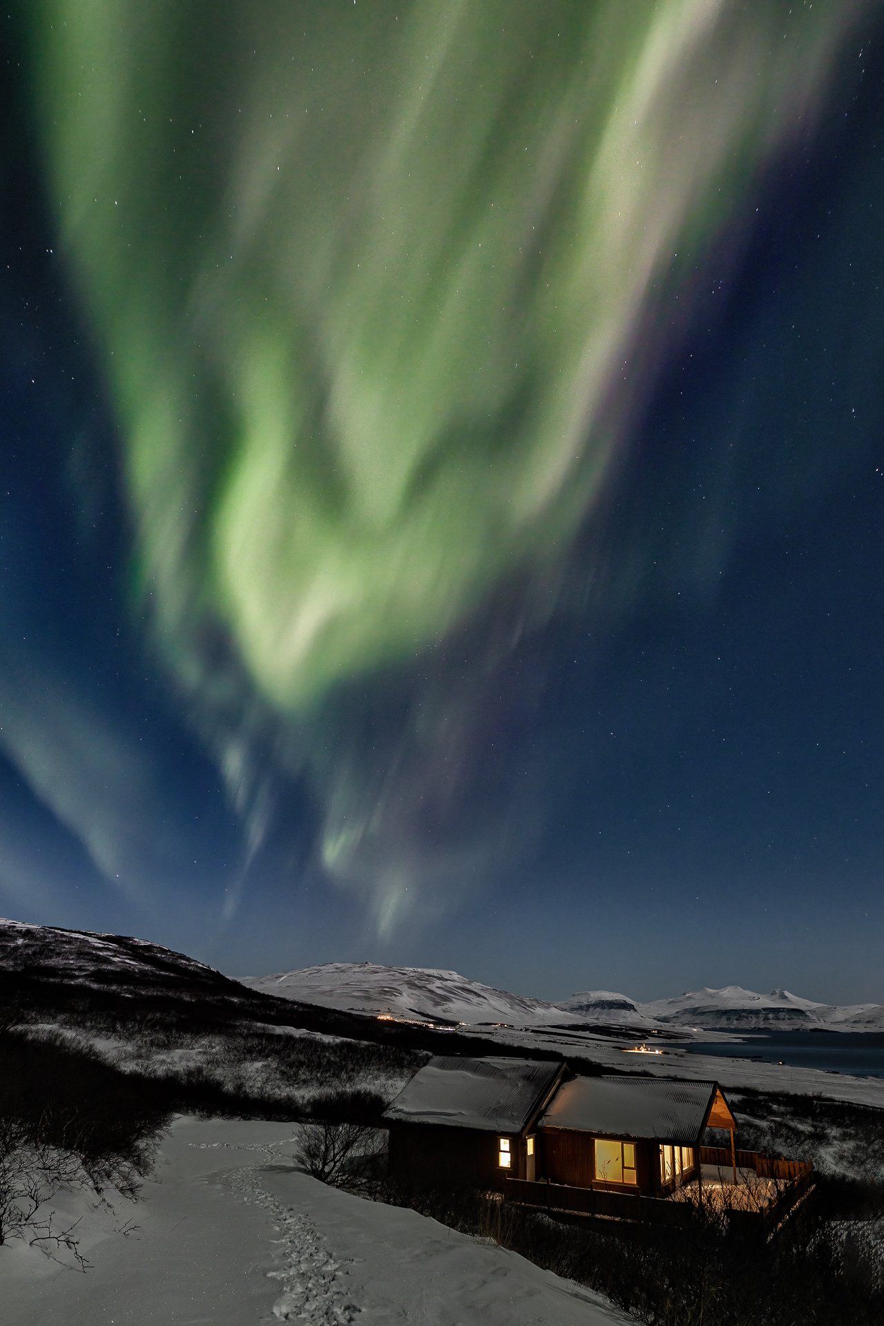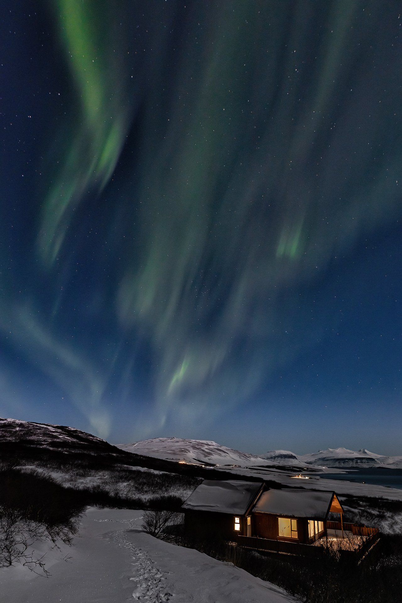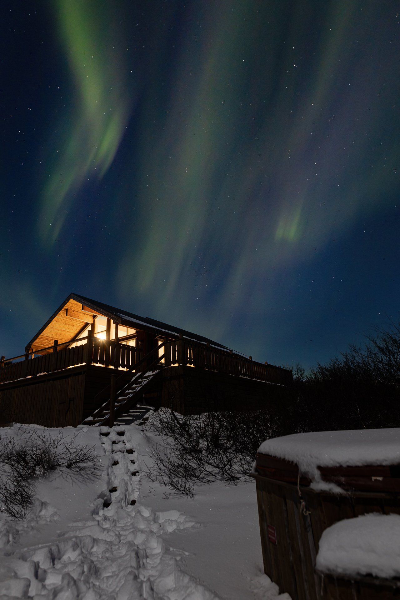 Dies war unser zweiter Urlaub mit Nordlichtern und es hatte es wieder einmal in sich... 3 Nächte mit Lady Aurora! Zudem mussten wir nur vor die Tür unserer verschneiten Hütte gehen, um den Tanz zu genießen. Das bei Vollmond.