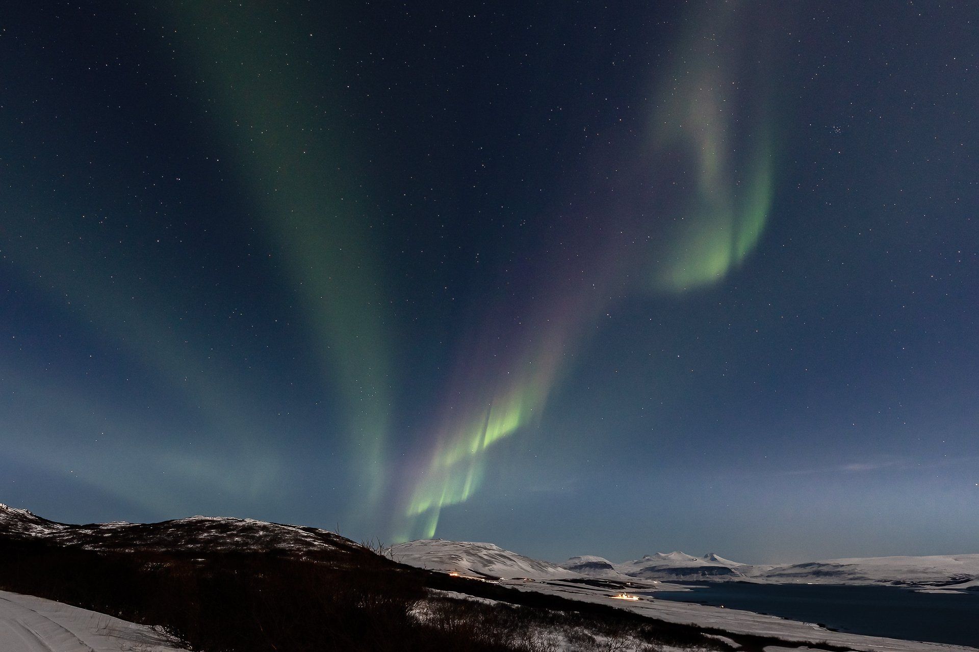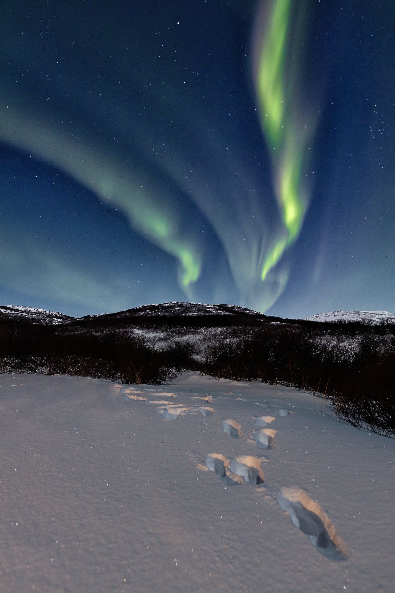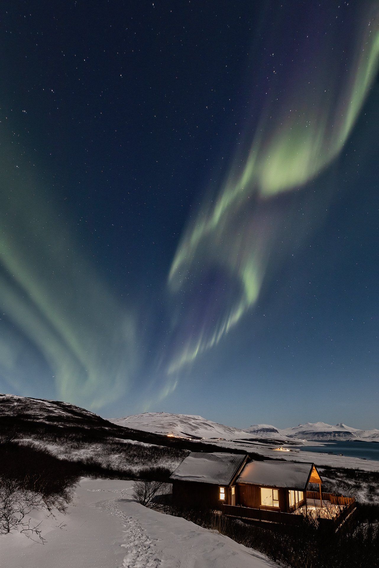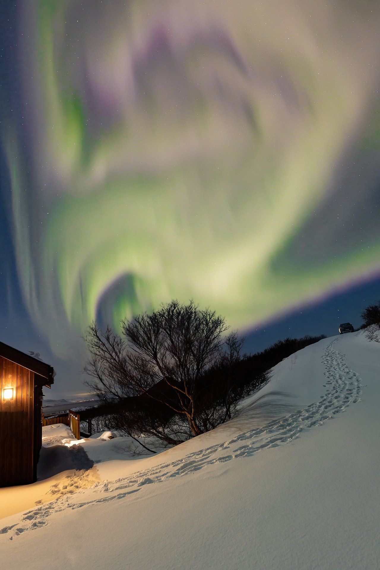 Dies war unser zweiter Urlaub mit Nordlichtern und es hatte es wieder einmal in sich... 3 Nächte mit Lady Aurora! Zudem mussten wir nur vor die Tür unserer verschneiten Hütte gehen, um den Tanz zu genießen. Das bei Vollmond.