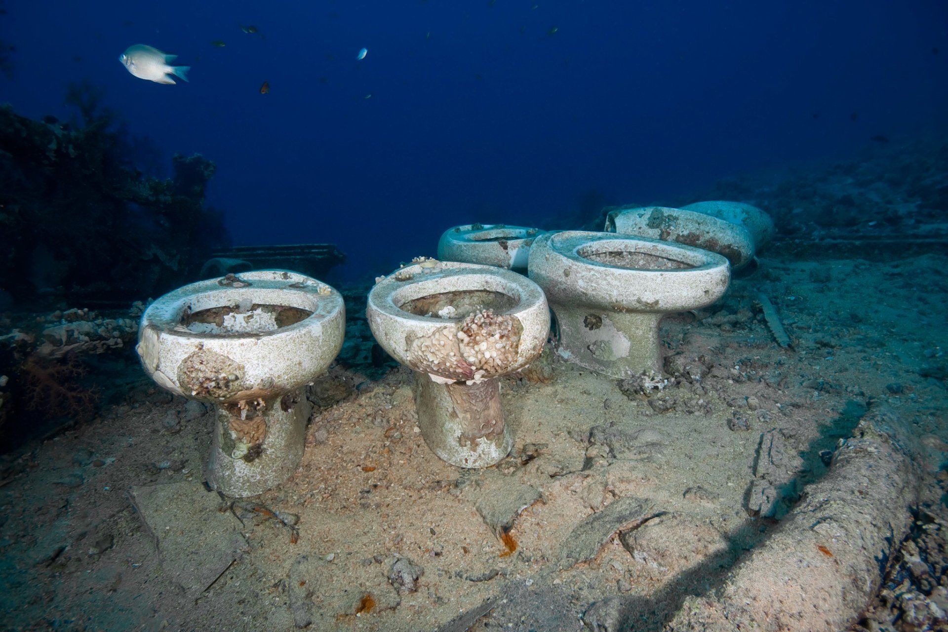 Weiterhin betauchten wir die Ladung der 1980 auf das Riffdach aufgelaufenen Louilla am Gordon Reef, da wo heute noch der Zahn der Zeit an ihr nagt. Genau wie an allen anderen Wracks leider auch. Für mich war es mit Ausnahme der Thistelgorm, die ich vor 15 Jahren das letzte mal betauchte, das erste mal dass ich im Sinai tauchte und muss sagen... seine Tauchplätze, egal wie lange sie schon betaucht werden, brauchen sich nicht hinter den anderen Tauchplätzen Ägyptens zu verstecken.