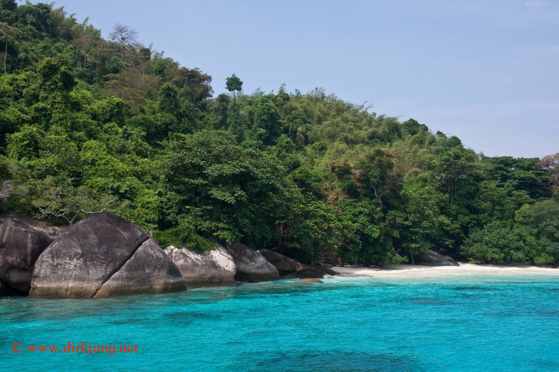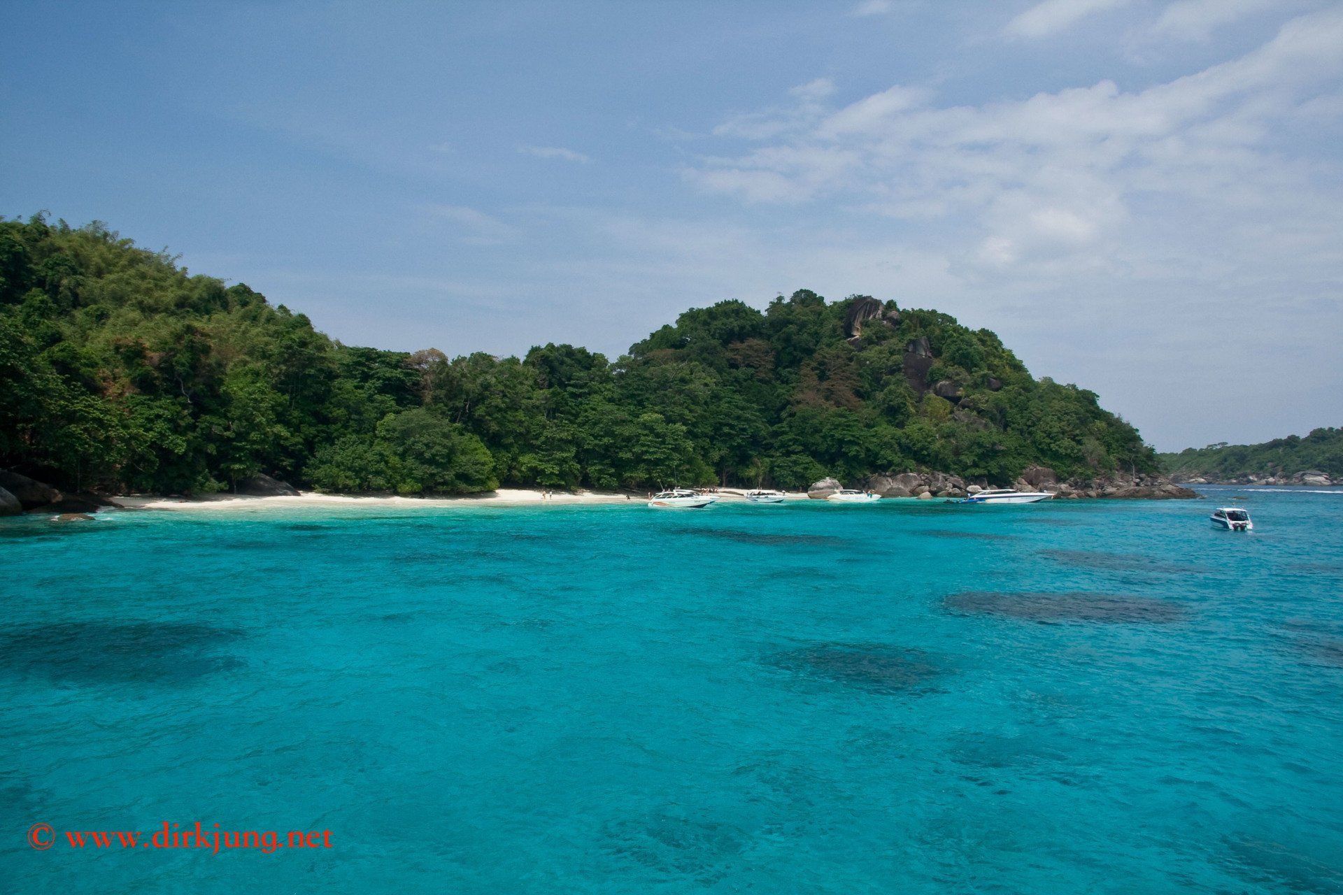 Wir wohnten im Andaburi Resort, ruhig aber doch in der Nähe zu allen Shops und Restaurants des Ortes... nur etwas weit vom Strand. Zum tauchen hatten wir uns die deutschsprachige Tauchbasis von Sea Bees ausgesucht. Bequemes, tolles Boot das für die 60 km lange Fahrt zu den Similan Islands genau richtig war. Einziger Nachteil... wenn das Boot ausgebucht war, waren recht viele Tauchgruppen im Wasser, was durch unterschiedliche Sprungzeiten entspannt werden sollte. Die vielen, netten Tauichguides gaben sich alle Mühe. Das Tauchgebiet vor Khao Lak besteht nur aus 2 zerfallenen Wracks alter Arbeitsplattformen mit sehr, sehr viel Fisch. Durch die Masse an Fisch aber sehr interessant. Alle anderen Tauchplätze befinden sich um die 9 Similan Islands herum. Durch die weite Entfernung zum Festland kein Tauchziel für Hardcoretaucher. Wer dies möchte dem bleibt nur eine mehrtägige Tauchsafari wo man auch entfernte Tauchziele bequem erreicht. Die Inseln bestehen aus riesigen Granitfelsen die sich auch Unterwasser in gigantischer Größe wieder finden lassen. Die teils mit Korallen bewachsen, teils durch Strömung bedingt, recht kahl sind. Dann gibt es viele normale Stellen die dann plötzlich von einigen großen Korallenblöcken abgelöst werden. Die wiederum mit tollen Weichkorallen und jede Menge Fisch aufwarten, alles was vorher zuwenig erschien ist plötzlich im Überfluss vorhanden. Thailand selbst ist nur zum Tauchen allein zu schön... Wie fast alle Länder in Asien. Man kann für kleines Geld überall sehr gut essen und kommt billig mit Roller, Taxi oder Bahn von A nach B.