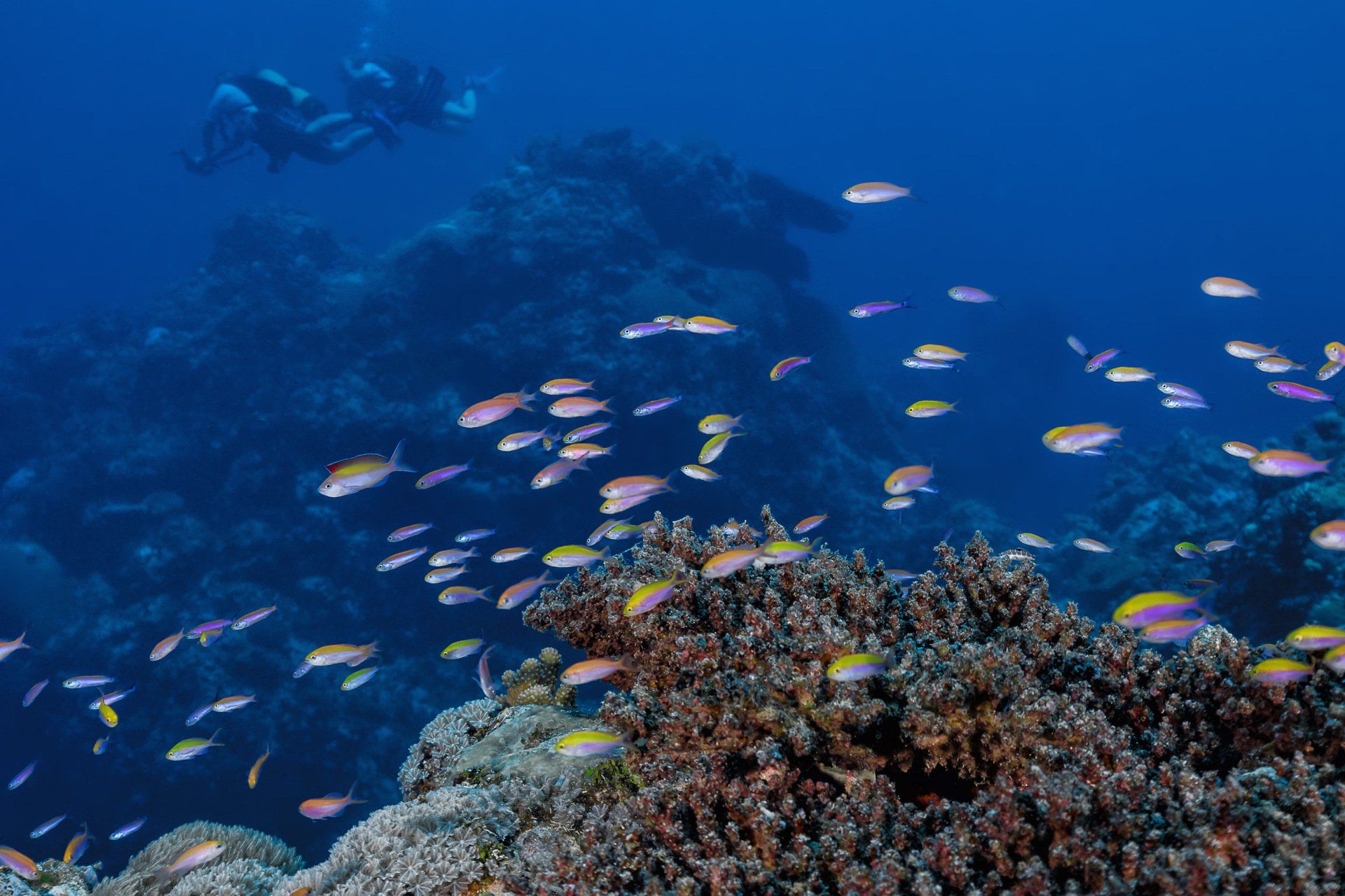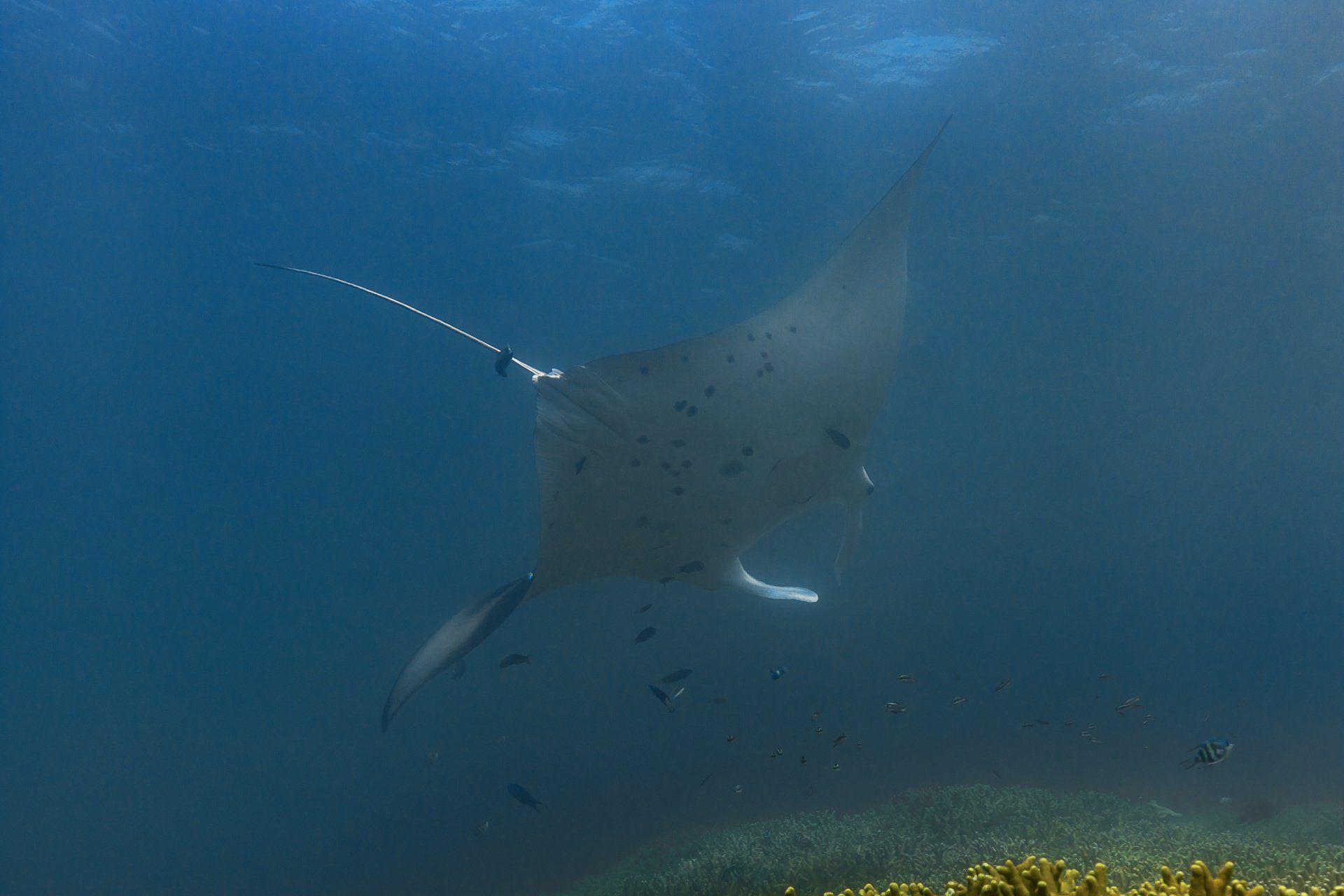 Ich tauchte mit Yap Divers und hatte die große Hoffnung, hier viele Mantas im klaren Wasser zu filmen und zu fotografieren. Leider war es, wie meistens mit Mantas, an den Putzerstationen sehr trübe und in der ganzen Woche ließen sie auch bis zum allerletzten Tag auf sich warten. In den ersten Tagen hat mich dann leider mein Videolicht im Stich gelassen, so dass ich auch keine toll ausgeleuchteten Videos aufzeichnen konnte. Wenn es läuft, dann läuft es halt! Die Tauchgänge am Außenriff und im Kanal waren genau das Gegenteil, klares Wasser mit 40m Sichtweite, geringe bis mäßige Strömung und leider kaum Fisch. Bis auf den Tauchplatz Vertico gab es kaum Haie und ich sah auch keinen einzigen Thuna oder andere Gruppen Hochseefisch. Dabei waren wir mitten im Pazifik... sehr schade! Dafür sah ich zum ersten mal weiße Anemonen mit helleren Anemonenfischen. Auch schön!