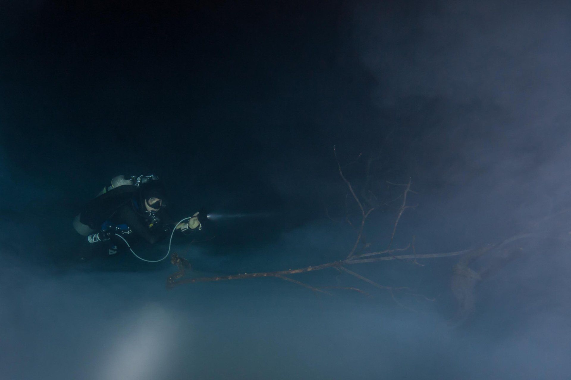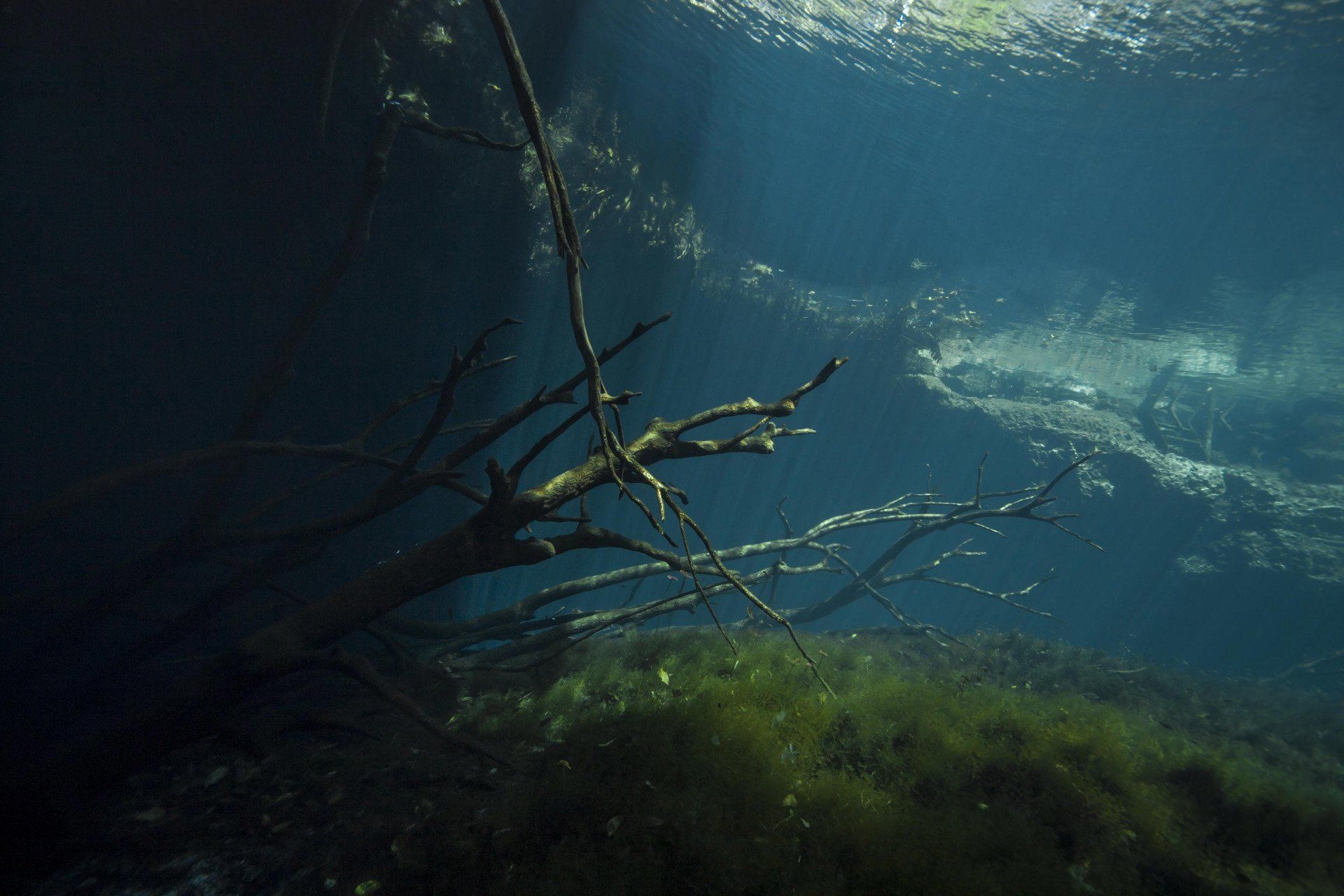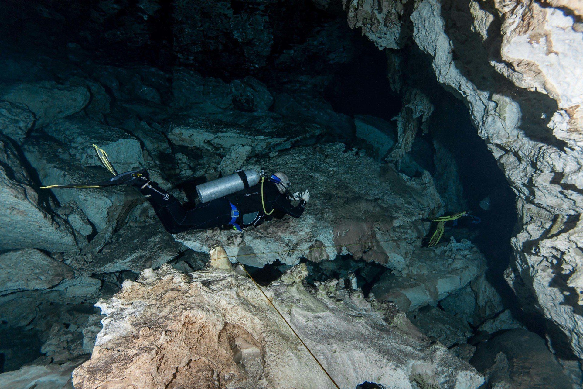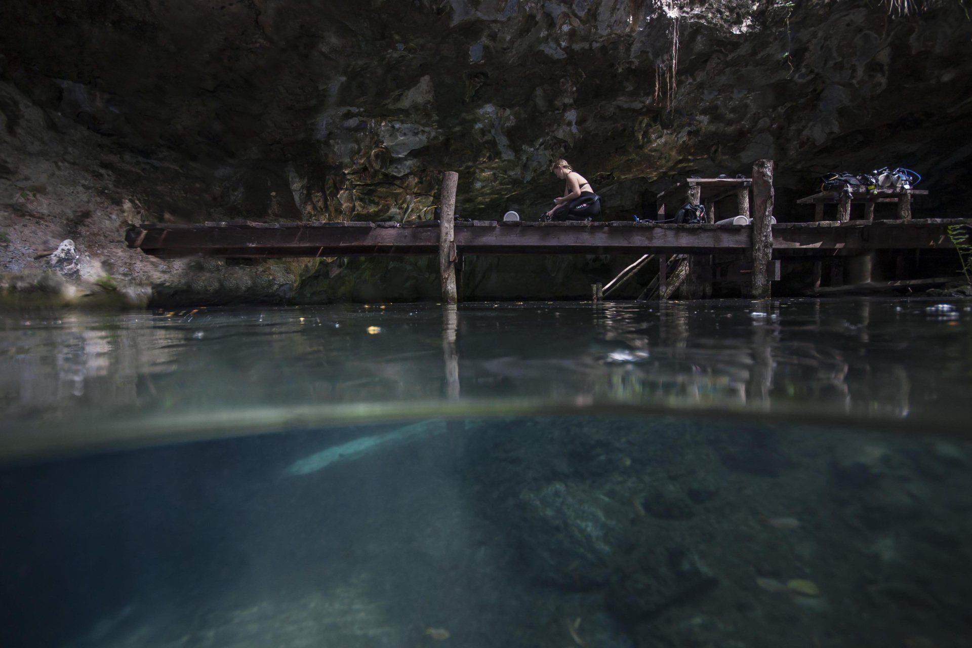 Wieder vertraute ich mich den Höhlentauchern vom Xibalba Dive Center an, die erneut einen tollen Job machten. Kaum angekommen Äußerte ich meine Wünsche und los ging es. Neben den "üblichen" Cenotentauchgängen erwarteten mich diesmal mit den Tauchplätzen "The Pit" und "Angelita" zwei tiefe (110m und 68m) Cenoten, die als Besonderheit eine Schwefelschicht auf ca. 28 Metern aufweisen. Diese trennt das Salz- vom Süßwasser und es ragen tote Bäume, die in die Cenoten gefallen sind, aus ihnen heraus... eine absolut gespenstige Kulisse mit toller Lichtstimmung. Es schaut aus, als ob man über einem See schwebt, der ans Ufer mit Bäumen plätschert. Unter der Schwefelschicht ist es fast dunkel und erinnert doch sehr an unsere Baggerseen. Die Sichtweite ist aber so gut wie die Lampe reicht. Nach dem tollen Dive in "Angelita" fuhren wir nach "Carwash", einem kleinem See mit Cenote ohne Führungleinen. Dieser Tauchplatz wird zum Training bei Höhlentauchkursen genutzt. Die Höhle selbst fand ich nicht so spektakulär, dafür bot sich mir aber ein absolut grandioser Ausblick aus der Höhle in den sonnendurchfluteten See mit seinem glasklarem Wasser, toten Bäumen, blauem Himmel, weißen Wolken, massenweise gebündelte Lichtstrahlen, Seerosen, Fischen, Schildkröten und meinem ersten Krokodil. Nicht sehr groß, ca. 1,5m, aber nur eine Armlänge von mir entfernt... Klasse... einer meiner besten Tauchtage der letzten Jahre.