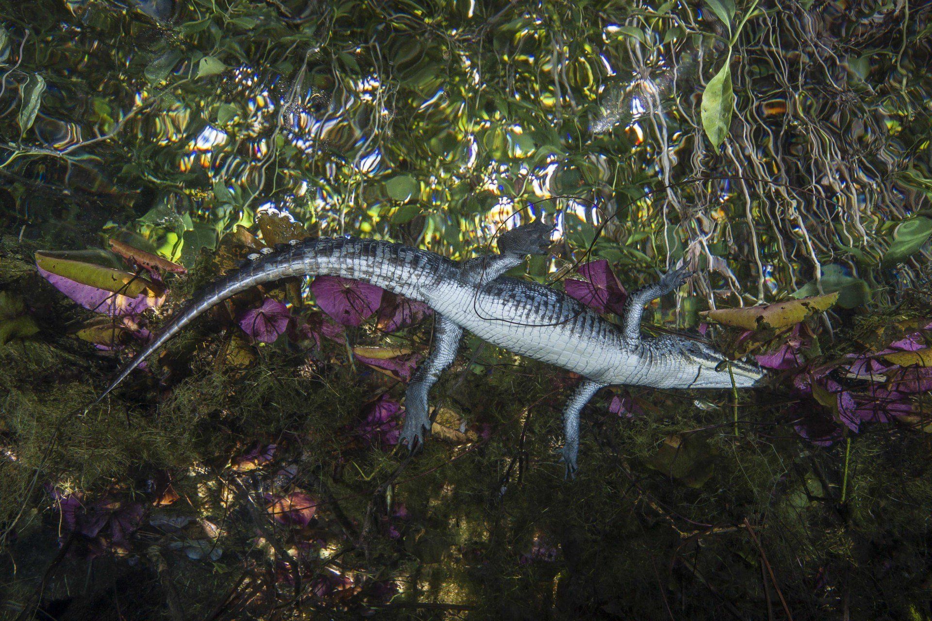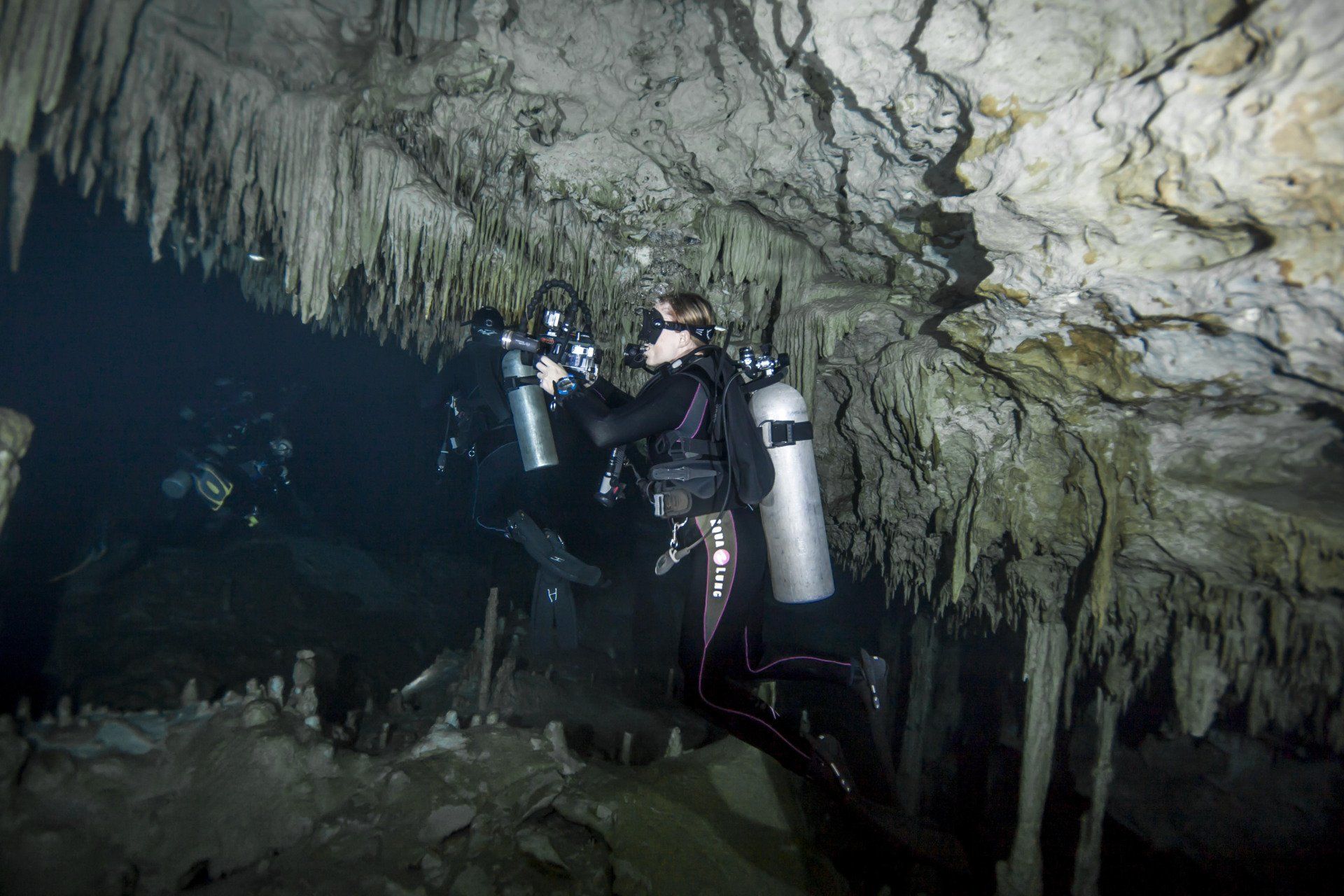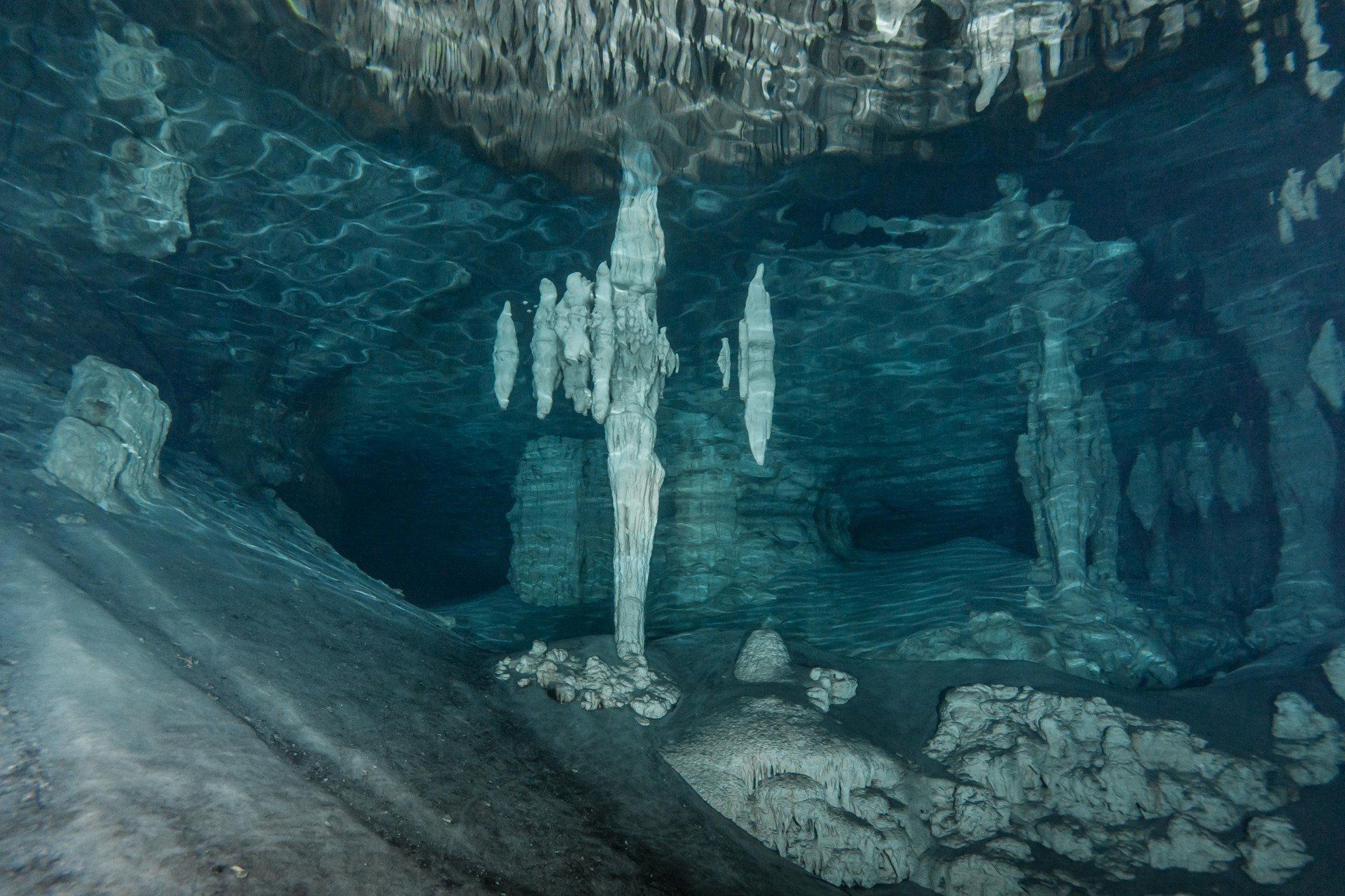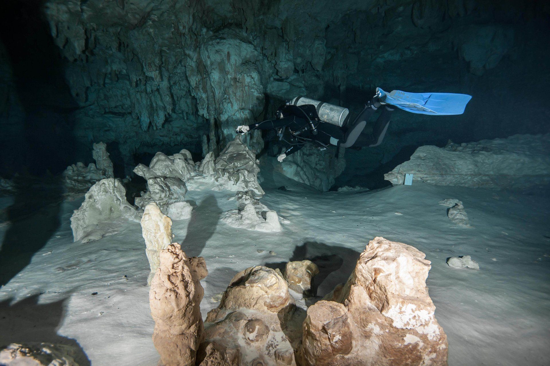 Wieder vertraute ich mich den Höhlentauchern vom Xibalba Dive Center an, die erneut einen tollen Job machten. Kaum angekommen Äußerte ich meine Wünsche und los ging es. Neben den "üblichen" Cenotentauchgängen erwarteten mich diesmal mit den Tauchplätzen "The Pit" und "Angelita" zwei tiefe (110m und 68m) Cenoten, die als Besonderheit eine Schwefelschicht auf ca. 28 Metern aufweisen. Diese trennt das Salz- vom Süßwasser und es ragen tote Bäume, die in die Cenoten gefallen sind, aus ihnen heraus... eine absolut gespenstige Kulisse mit toller Lichtstimmung. Es schaut aus, als ob man über einem See schwebt, der ans Ufer mit Bäumen plätschert. Unter der Schwefelschicht ist es fast dunkel und erinnert doch sehr an unsere Baggerseen. Die Sichtweite ist aber so gut wie die Lampe reicht. Nach dem tollen Dive in "Angelita" fuhren wir nach "Carwash", einem kleinem See mit Cenote ohne Führungleinen. Dieser Tauchplatz wird zum Training bei Höhlentauchkursen genutzt. Die Höhle selbst fand ich nicht so spektakulär, dafür bot sich mir aber ein absolut grandioser Ausblick aus der Höhle in den sonnendurchfluteten See mit seinem glasklarem Wasser, toten Bäumen, blauem Himmel, weißen Wolken, massenweise gebündelte Lichtstrahlen, Seerosen, Fischen, Schildkröten und meinem ersten Krokodil. Nicht sehr groß, ca. 1,5m, aber nur eine Armlänge von mir entfernt... Klasse... einer meiner besten Tauchtage der letzten Jahre.
