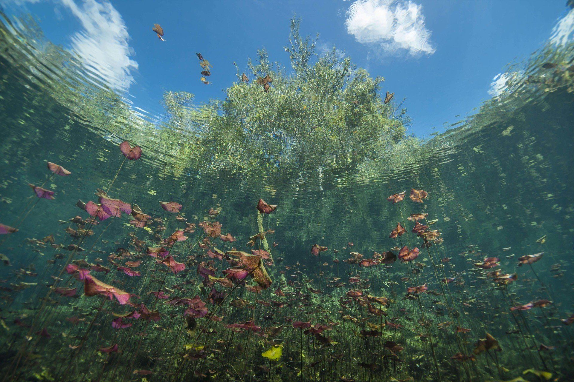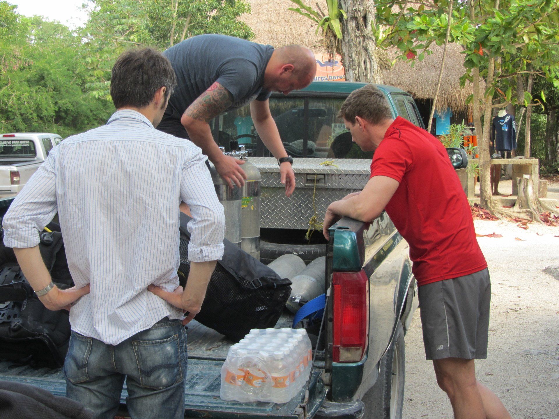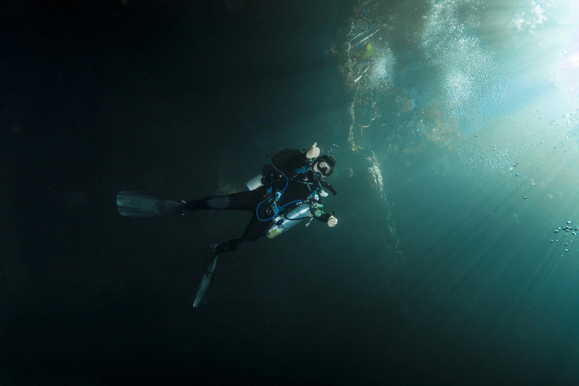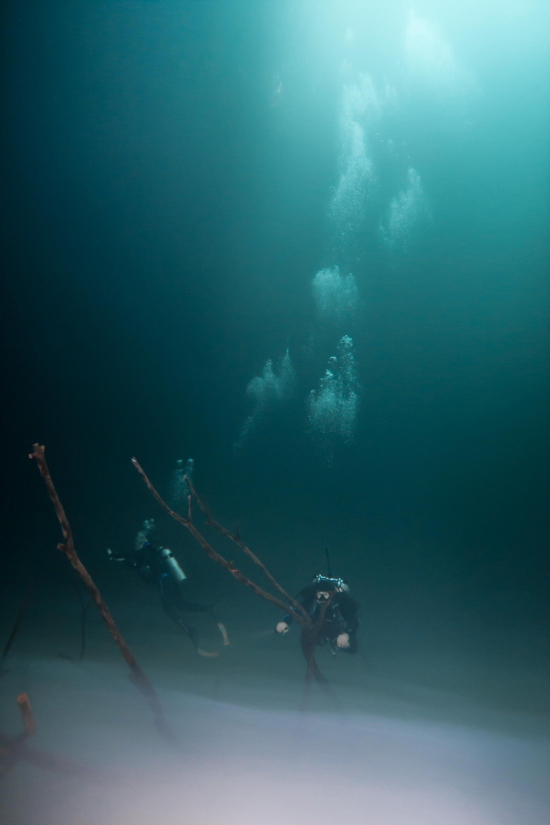 Wieder vertraute ich mich den Höhlentauchern vom Xibalba Dive Center an, die erneut einen tollen Job machten. Kaum angekommen Äußerte ich meine Wünsche und los ging es. Neben den "üblichen" Cenotentauchgängen erwarteten mich diesmal mit den Tauchplätzen "The Pit" und "Angelita" zwei tiefe (110m und 68m) Cenoten, die als Besonderheit eine Schwefelschicht auf ca. 28 Metern aufweisen. Diese trennt das Salz- vom Süßwasser und es ragen tote Bäume, die in die Cenoten gefallen sind, aus ihnen heraus... eine absolut gespenstige Kulisse mit toller Lichtstimmung. Es schaut aus, als ob man über einem See schwebt, der ans Ufer mit Bäumen plätschert. Unter der Schwefelschicht ist es fast dunkel und erinnert doch sehr an unsere Baggerseen. Die Sichtweite ist aber so gut wie die Lampe reicht. Nach dem tollen Dive in "Angelita" fuhren wir nach "Carwash", einem kleinem See mit Cenote ohne Führungleinen. Dieser Tauchplatz wird zum Training bei Höhlentauchkursen genutzt. Die Höhle selbst fand ich nicht so spektakulär, dafür bot sich mir aber ein absolut grandioser Ausblick aus der Höhle in den sonnendurchfluteten See mit seinem glasklarem Wasser, toten Bäumen, blauem Himmel, weißen Wolken, massenweise gebündelte Lichtstrahlen, Seerosen, Fischen, Schildkröten und meinem ersten Krokodil. Nicht sehr groß, ca. 1,5m, aber nur eine Armlänge von mir entfernt... Klasse... einer meiner besten Tauchtage der letzten Jahre.