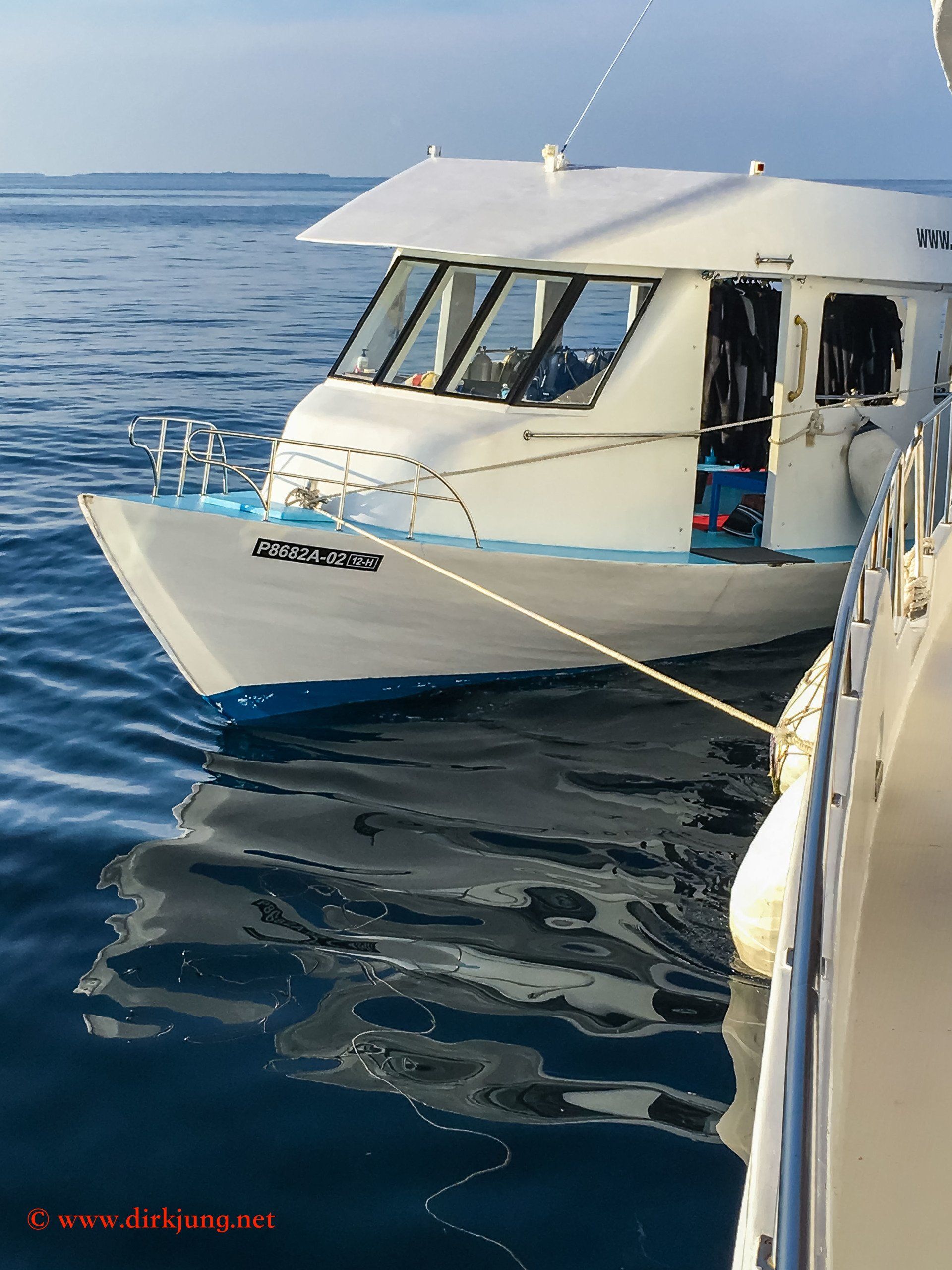 Als kleine Gruppe von drei Tauchern aus unserm Tauchverein reisten wir im November 2016 auf die Malediven. Von der Flughafeninsel Hulhule flogen wir zu dem hoch im Norden gelegenen Flughafen Hanimaadhoo. Hier erwartete uns schon unser schwimmendes Hotel, die Amba - unser Tauchschiff und neues zu Hause für die nächste Woche. Ein modernes, geräumiges Schiff mit guter Crew, tollen Tauchguides und gutem Essen. Mit Gästen aus England, Dänemark, Österreich und Deutschland eine gelungene und nette Mischung.